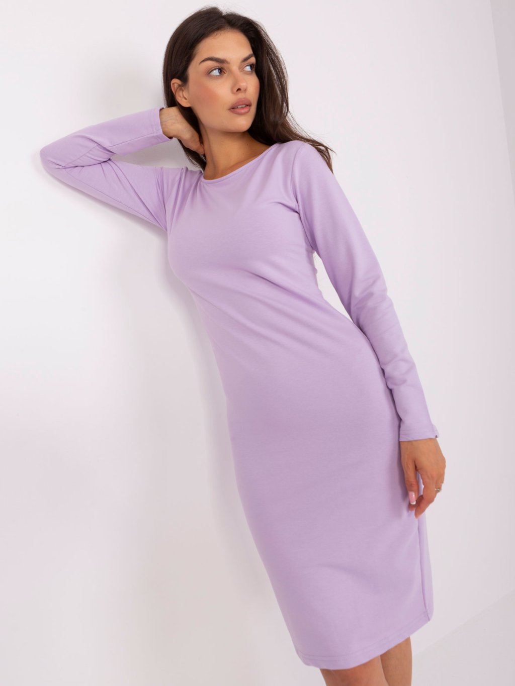 SVĚTLE FIALOVÉ ŠATY SE ZIPEM A DLOUHÝM RUKÁVEM