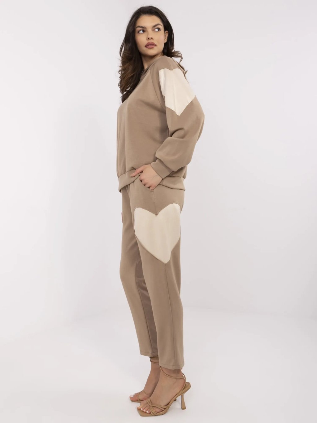 SVĚTLE HNĚDÝ DÁMSKÝ SET SE SRDÍČKOVÝMI NÁŠIVKAMI