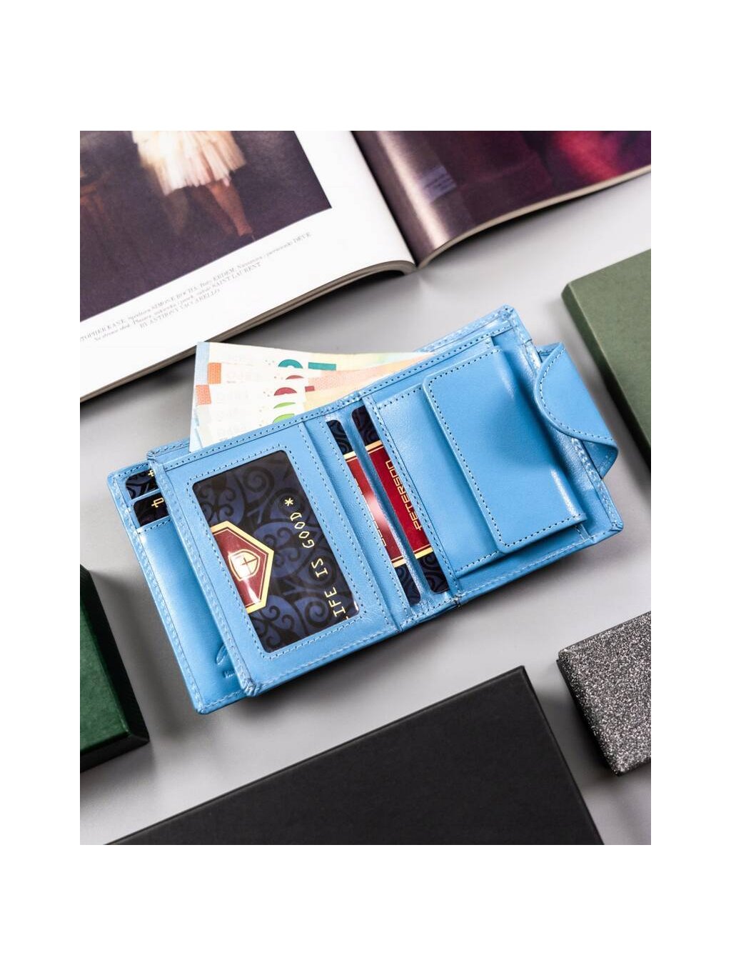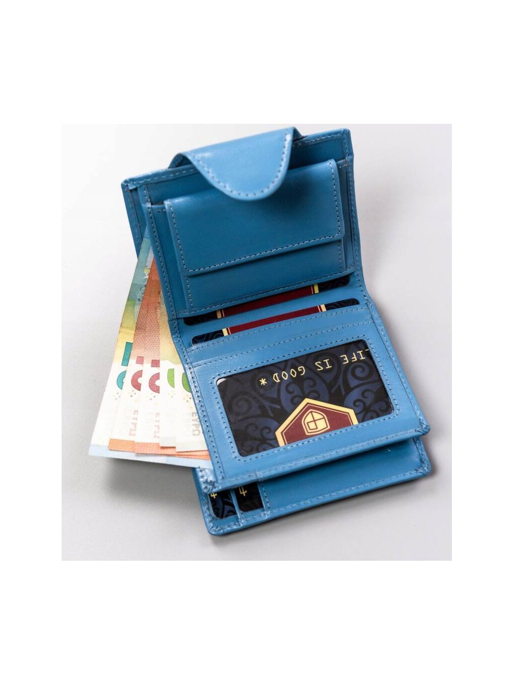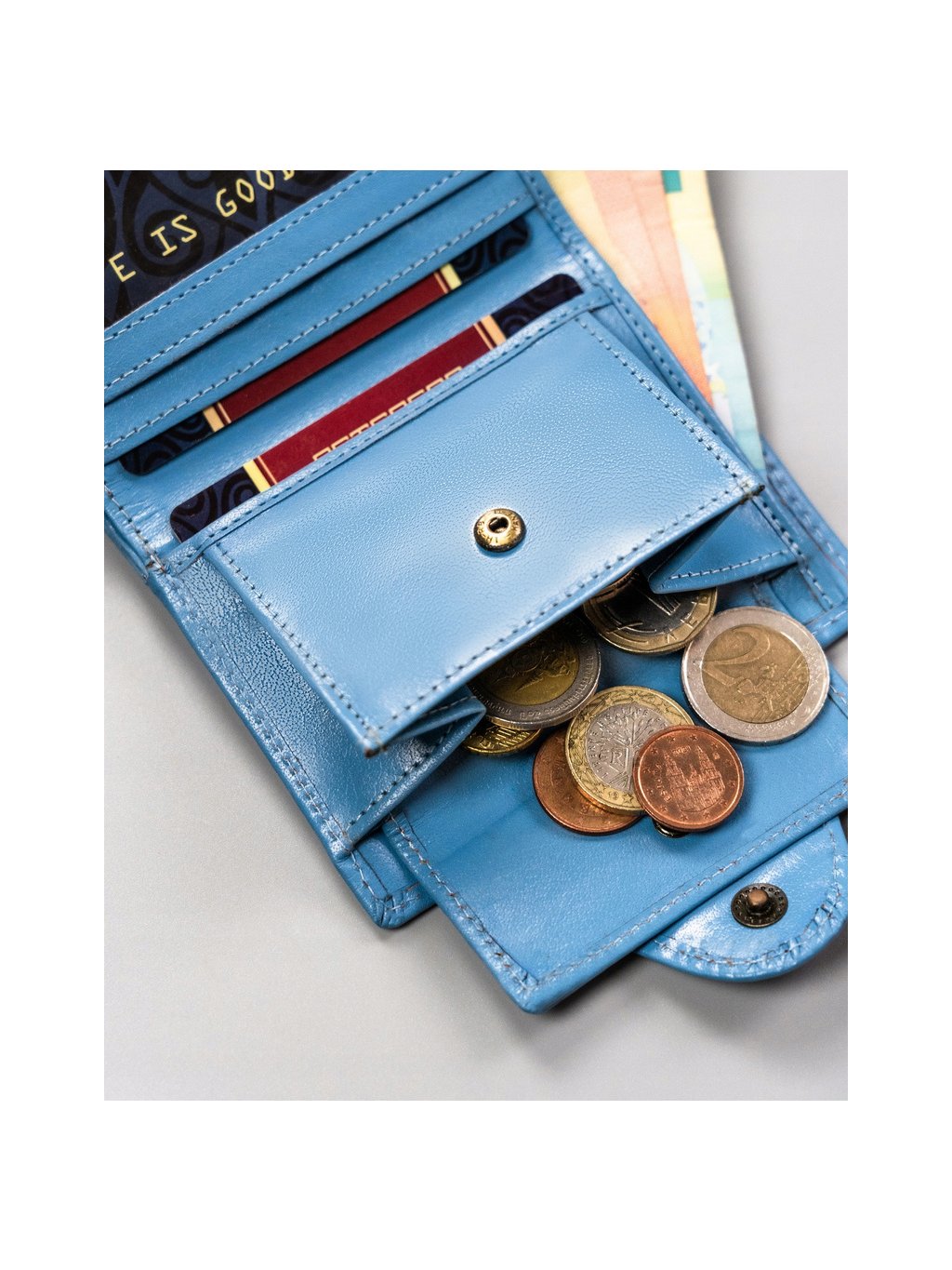 SVĚTLE MODRÁ MALÁ DÁMSKÁ KOŽENÁ PENĚŽENKA Y409