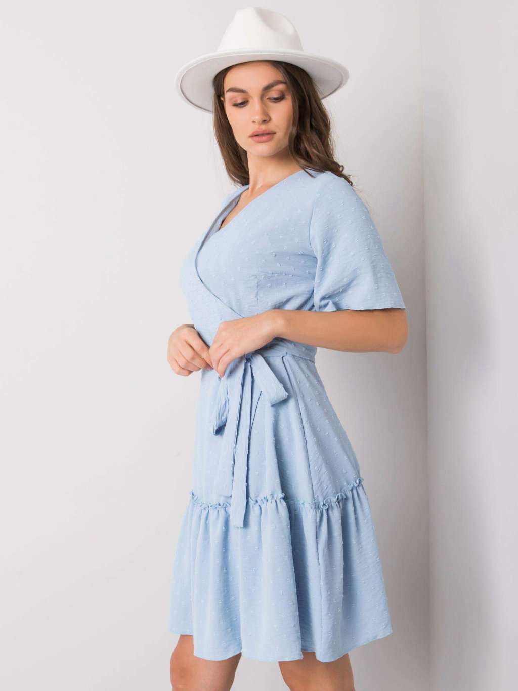 SVĚTLE MODRÉ DÁMSKÉ ŠATY S VÁZÁNÍM