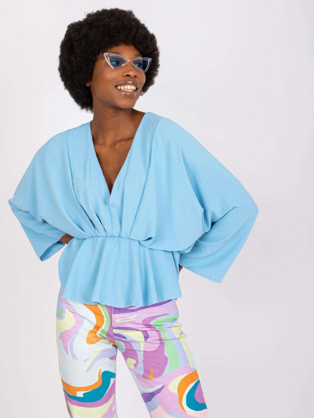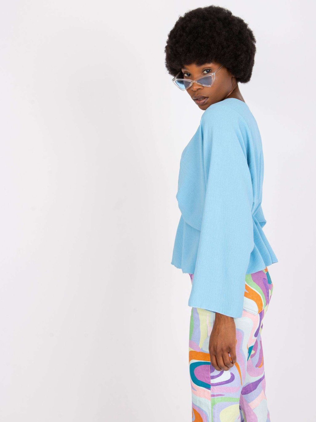 SVĚTLE MODRÉ DÁMSKÉ VOLNÉ TRIČKO S ŘASENÍM
