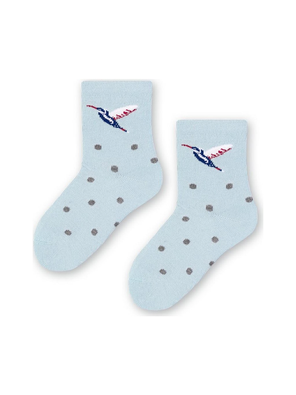 SVĚTLE MODRÉ PUNTÍKATÉ DÍVČÍ PONOŽKY S PTÁČKEM ART.138