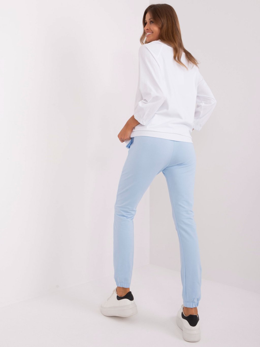 SVĚTLE MODRO-BÍLÁ SOUPRAVA TRIČKA S MEDVÍDKEM A TEPLÁKŮ