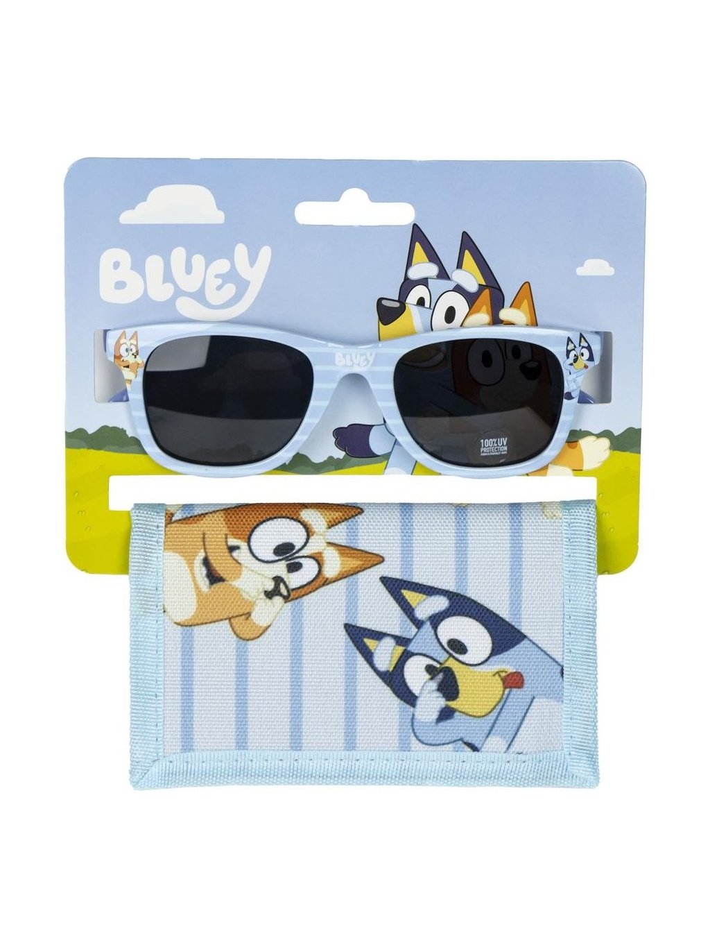 SVĚTLE MODRÝ DĚTSKÝ SET SLUNEČNÍCH BRÝLÍ A PENĚŽENKY BLUEY AND CHILLI