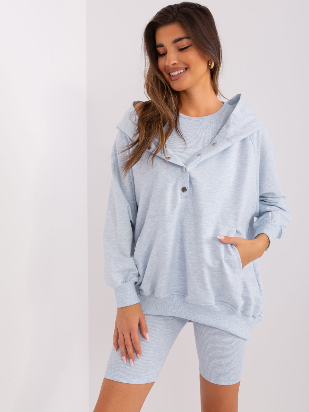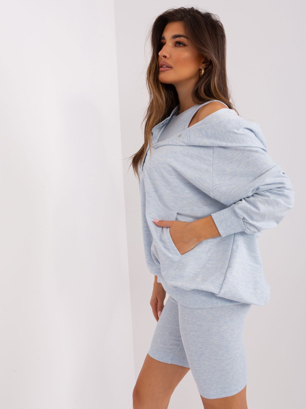 SVĚTLE MODRÝ TŘÍDÍLNÝ KOMPLET ŠORTEK, CROP TOPU A MIKINY