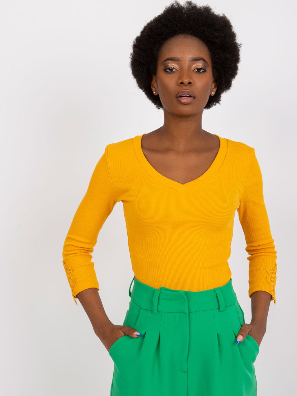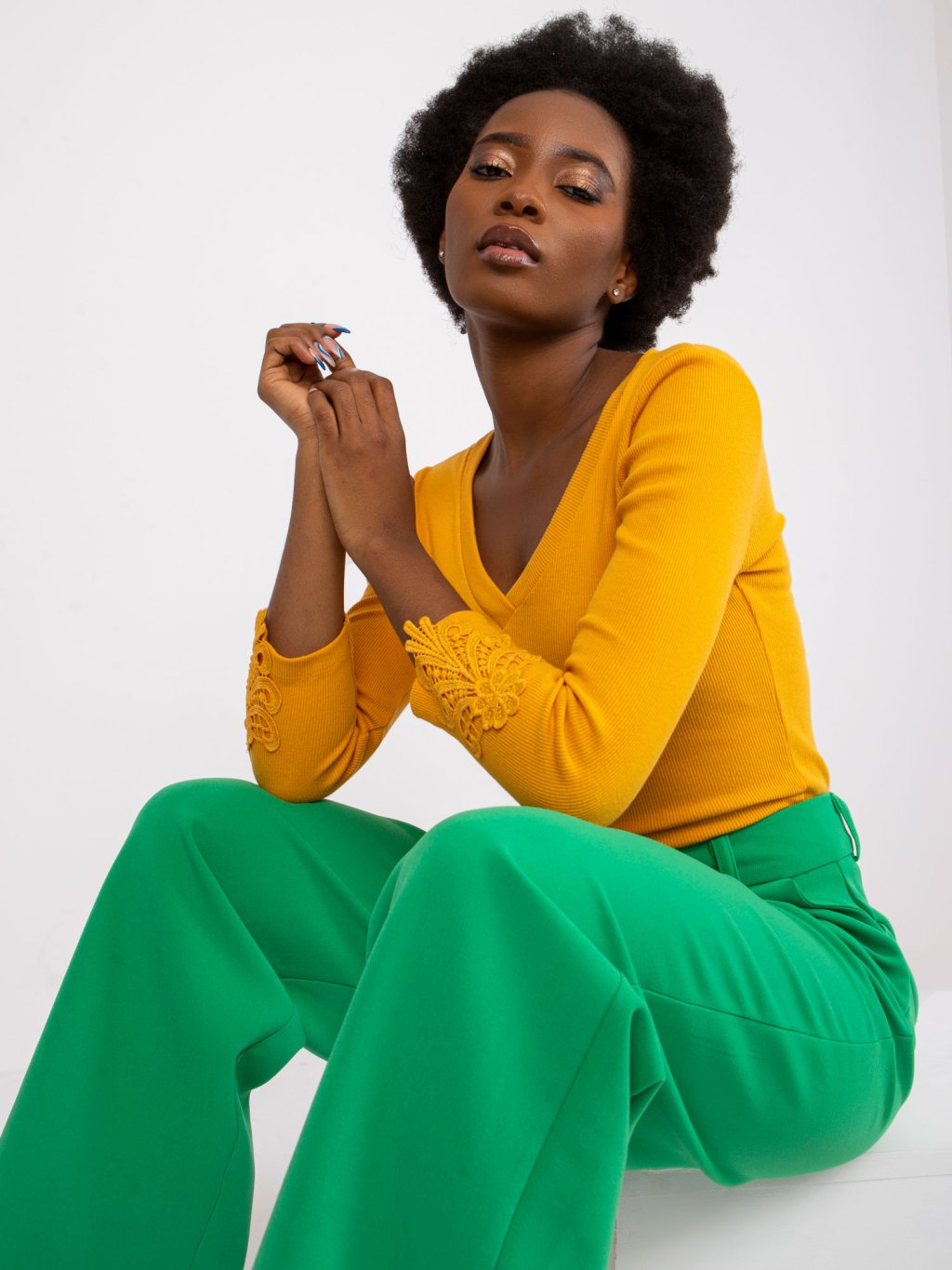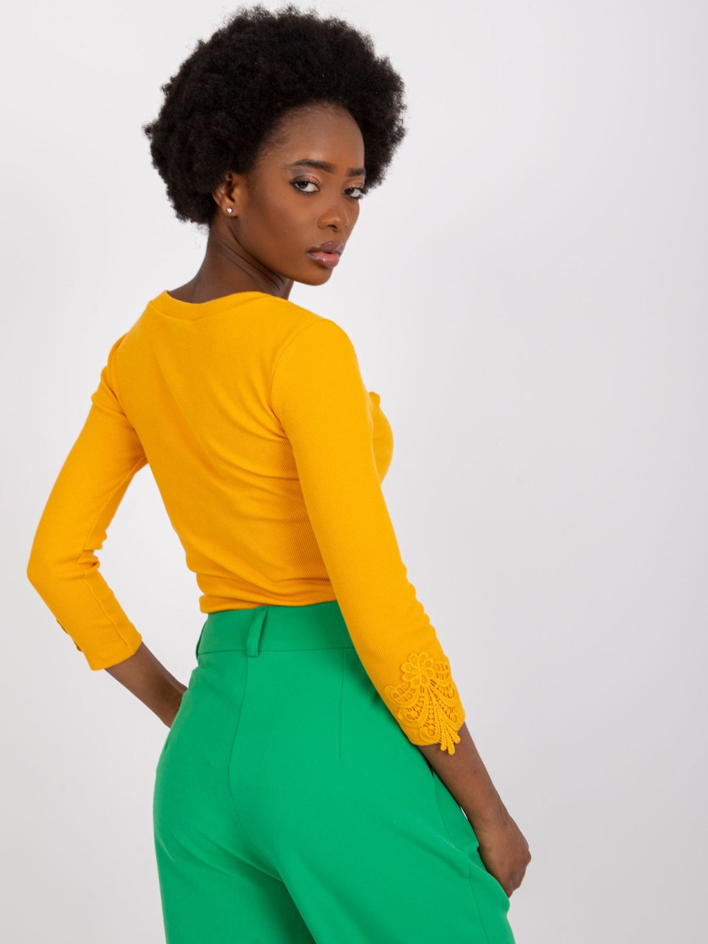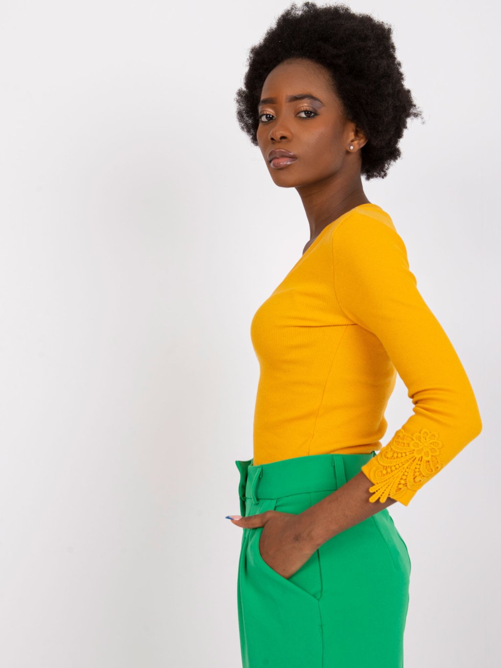 SVĚTLE ORANŽOVÉ ŽEBROVANÉ TRIČKO ALISSIA S KRAJKOU NA RUKÁVECH