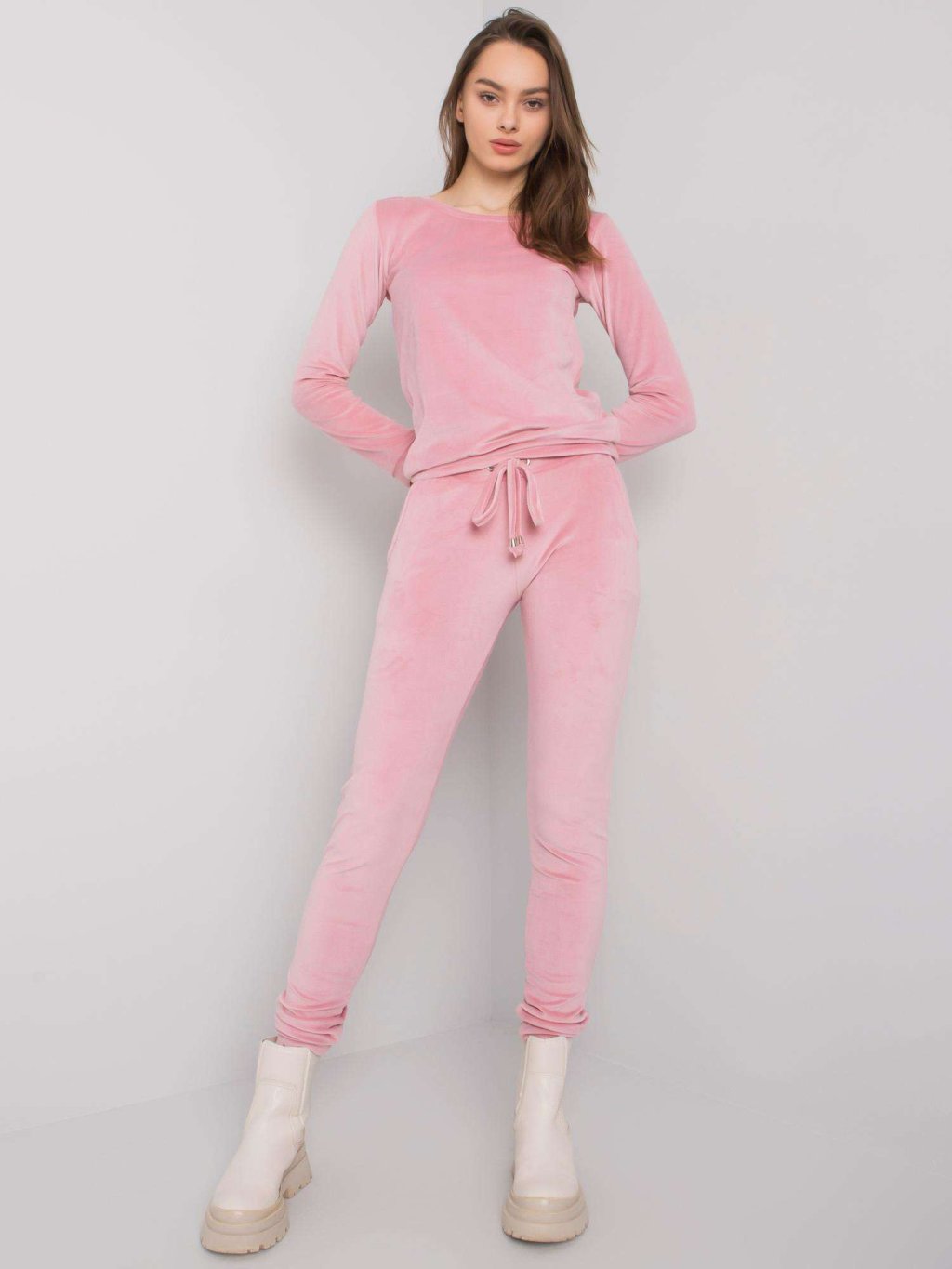 SVĚTLE RŮŽOVÁ VELUROVÁ SOUPRAVA MIKINY A TEPLÁKŮ