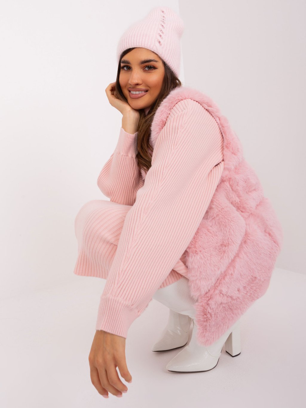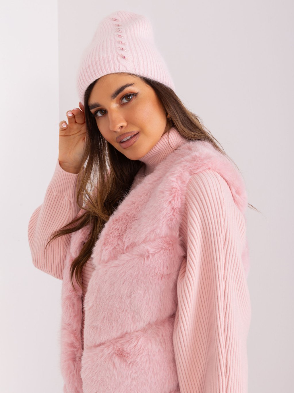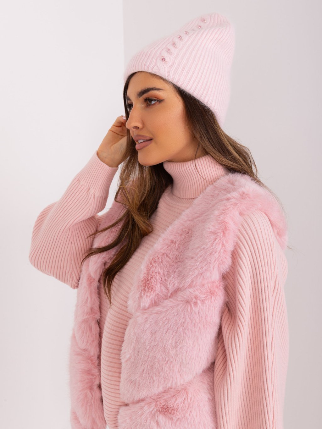 SVĚTLE RŮŽOVÁ ZIMNÍ ČEPICE S APLIKACÍ