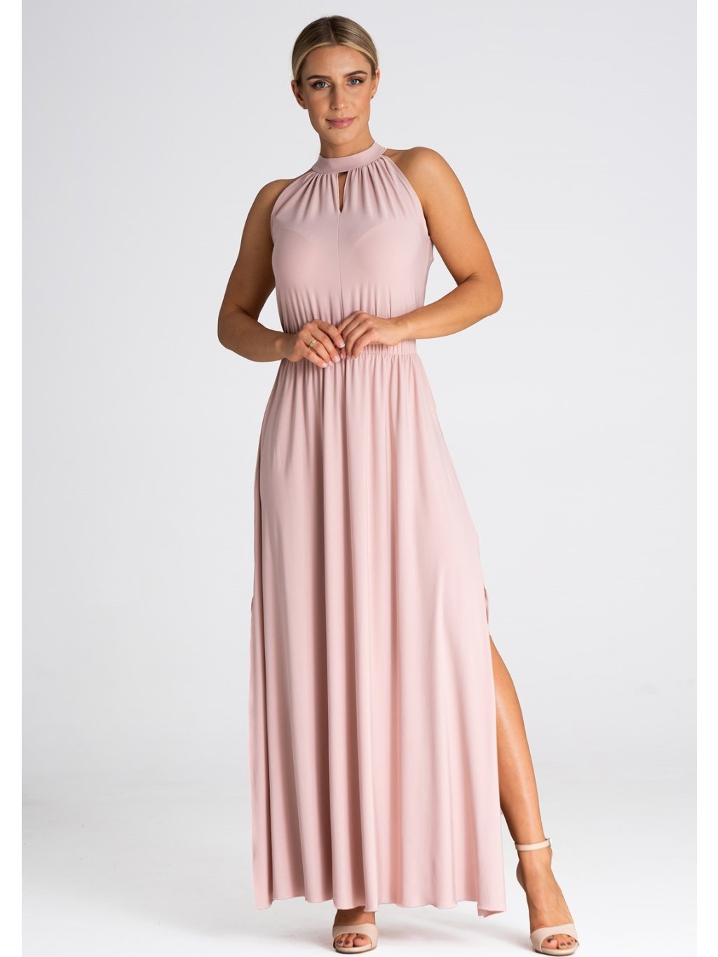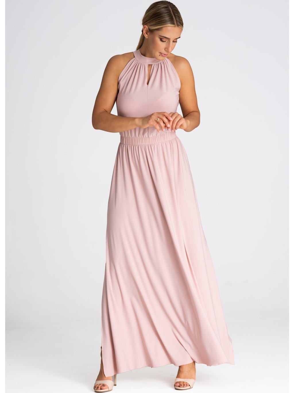 SVĚTLE RŮŽOVÉ DLOUHÉ ŠATY S ROZPARKY