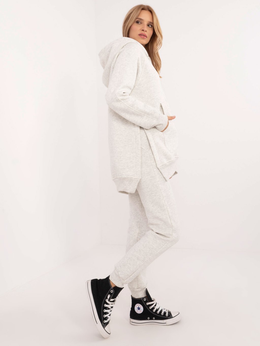 SVĚTLE ŠEDÁ DÁMSKÁ HŘEJIVÁ TEPLÁKOVÁ SOUPRAVA S KAPUCÍ