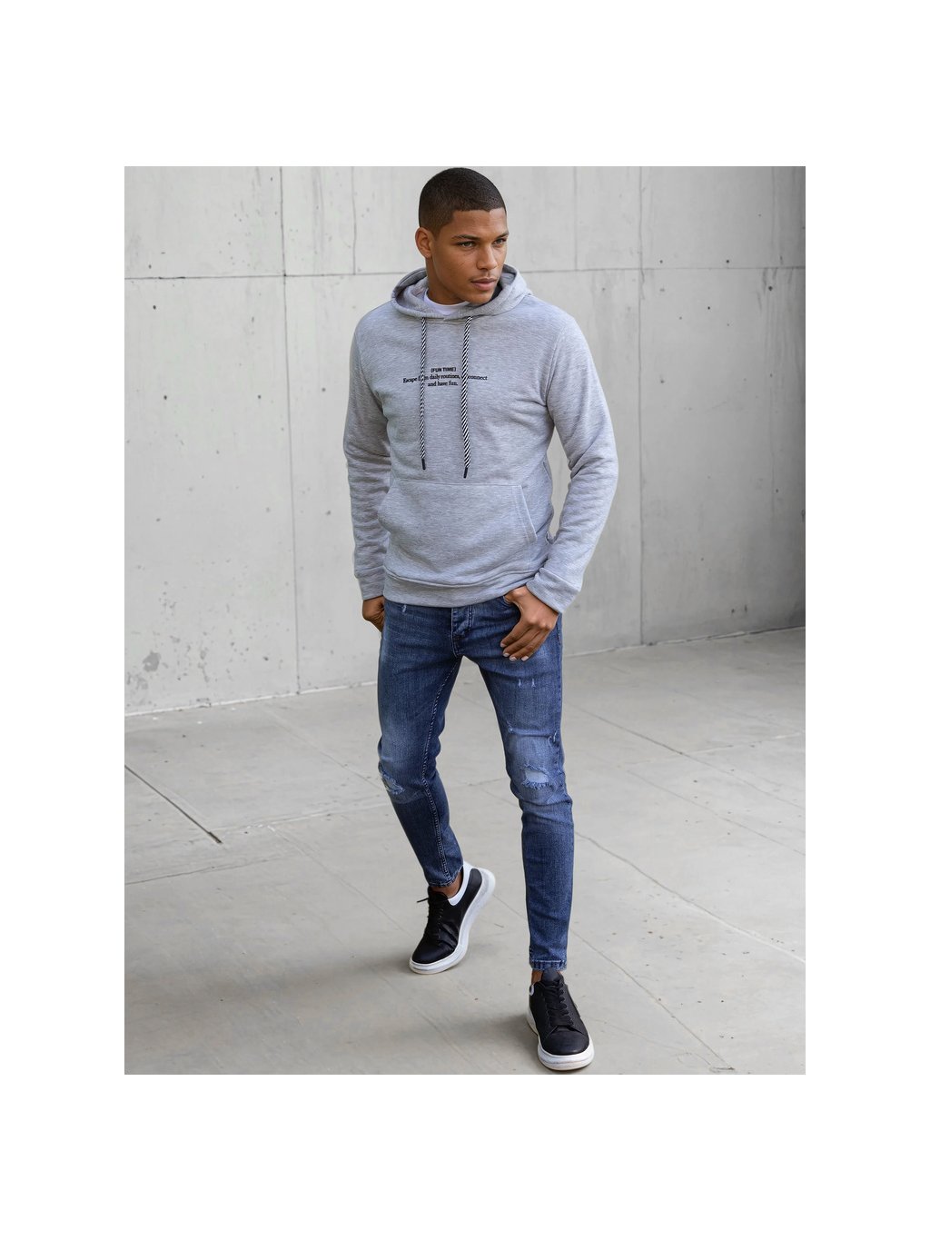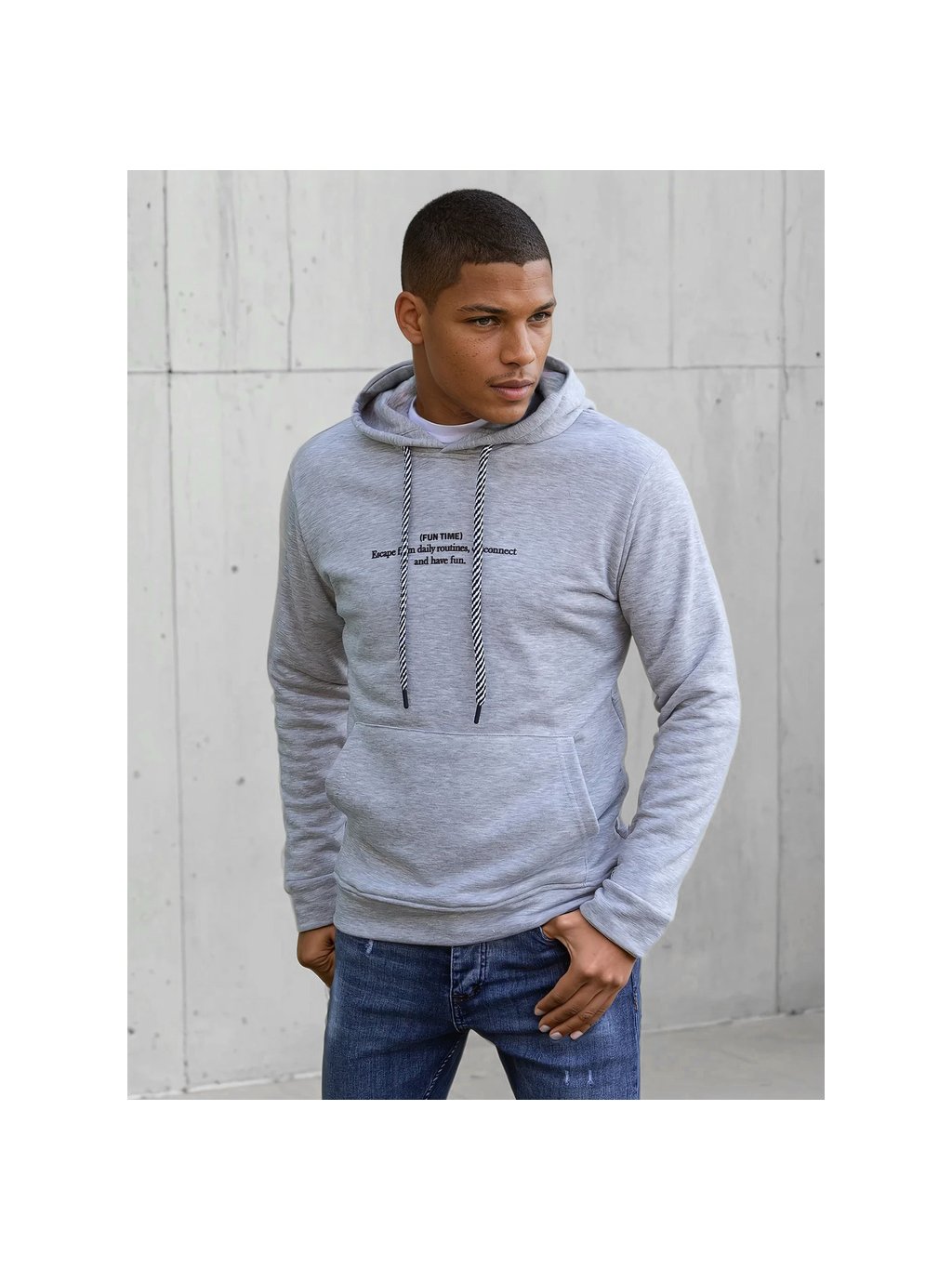 SVĚTLE ŠEDÁ PÁNSKÁ MIKINA S NÁPISEM