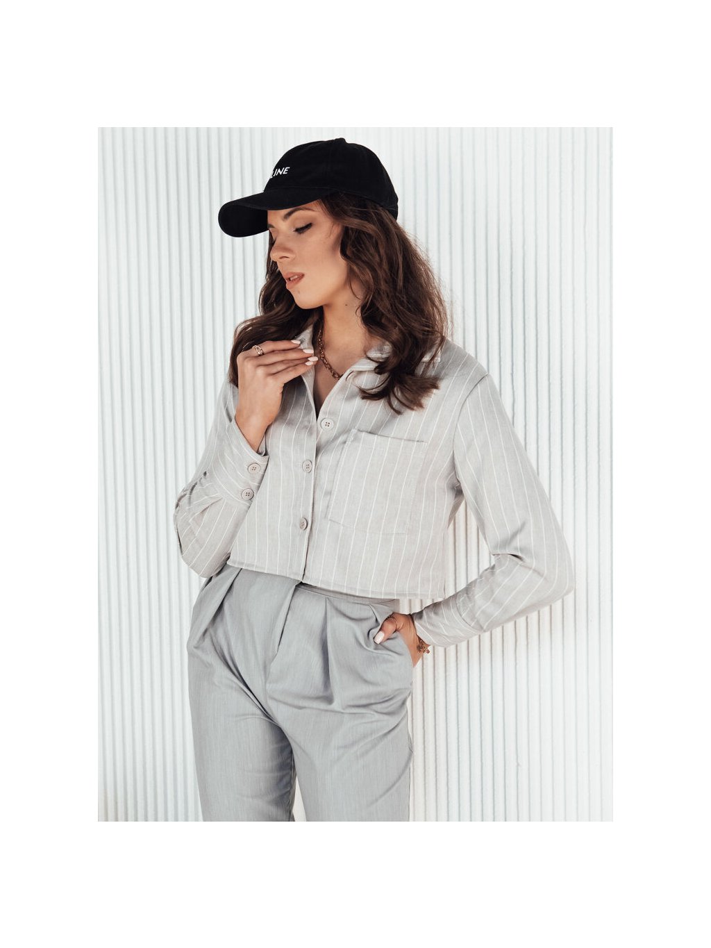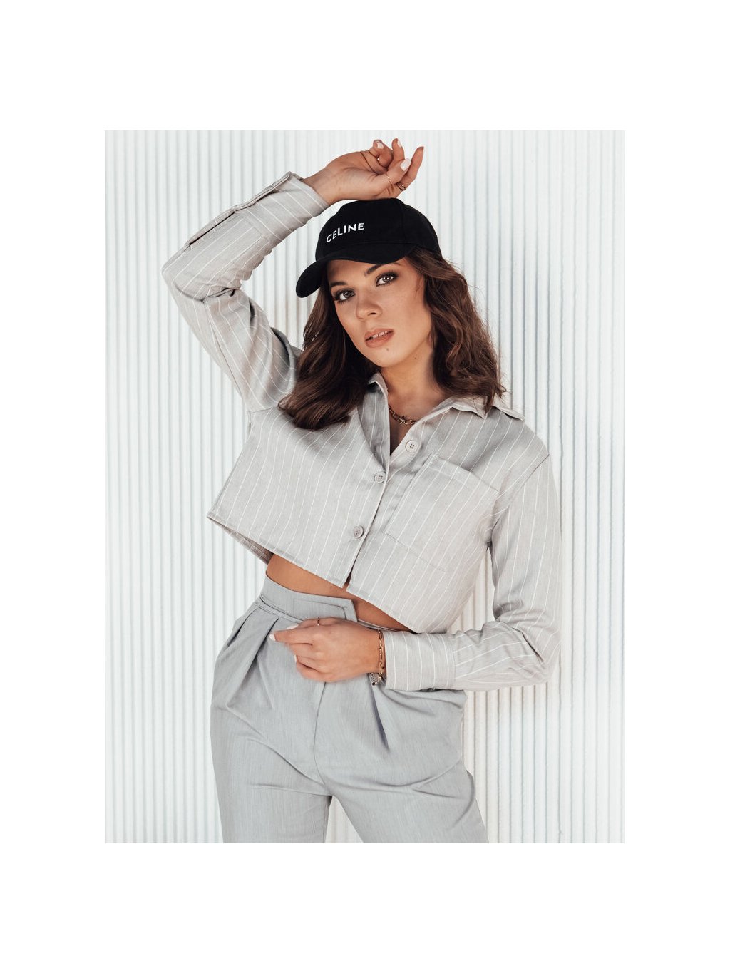 SVĚTLE ŠEDÁ PRUHOVANÁ CROP KOŠILE GIRSA