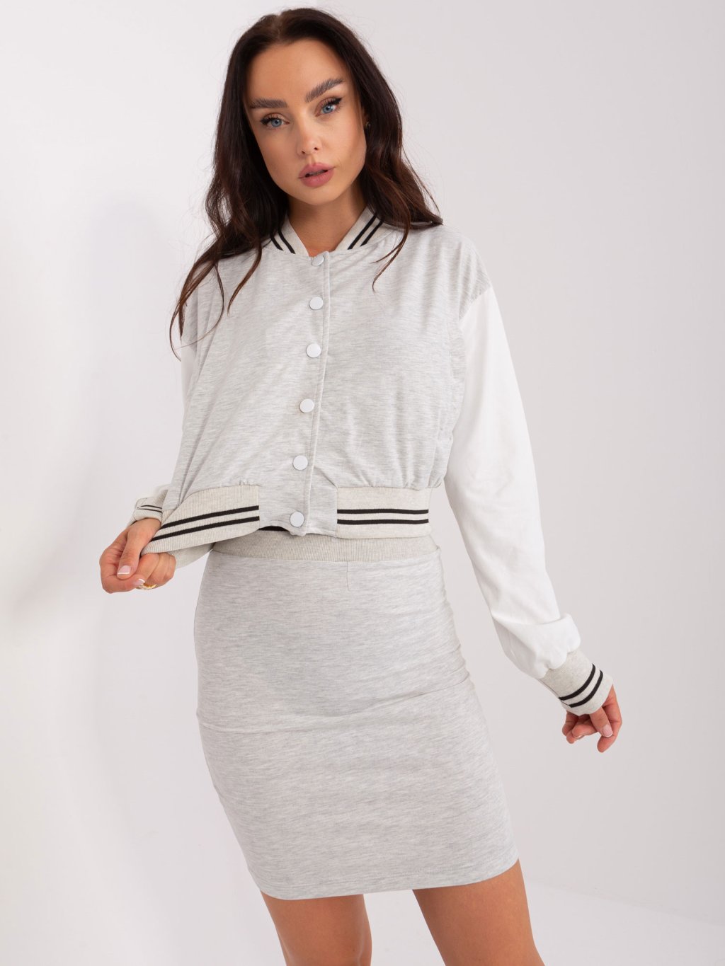 SVĚTLE ŠEDÁ SOUPRAVA SUKNĚ A BASEBALLOVÉ MIKINY