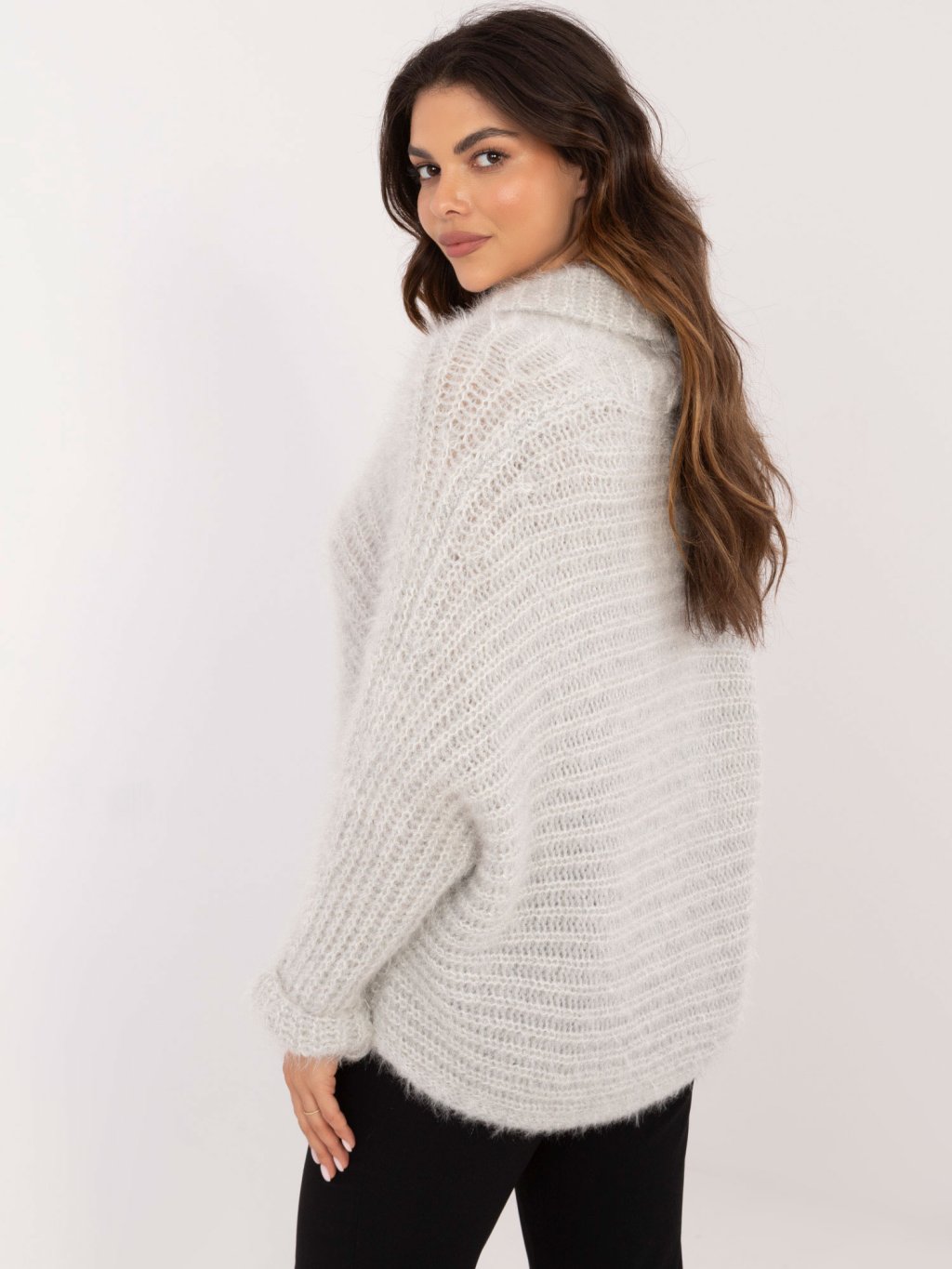 SVĚTLE ŠEDÝ SVETR S V VÝSTŘIHEM A ZAPÍNÁNÍM NA KNOFLÍKY
