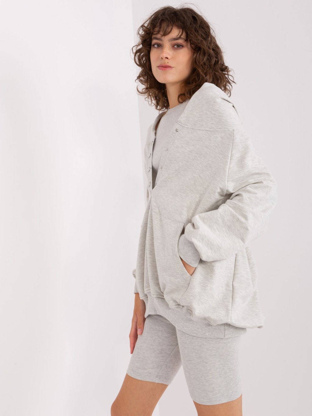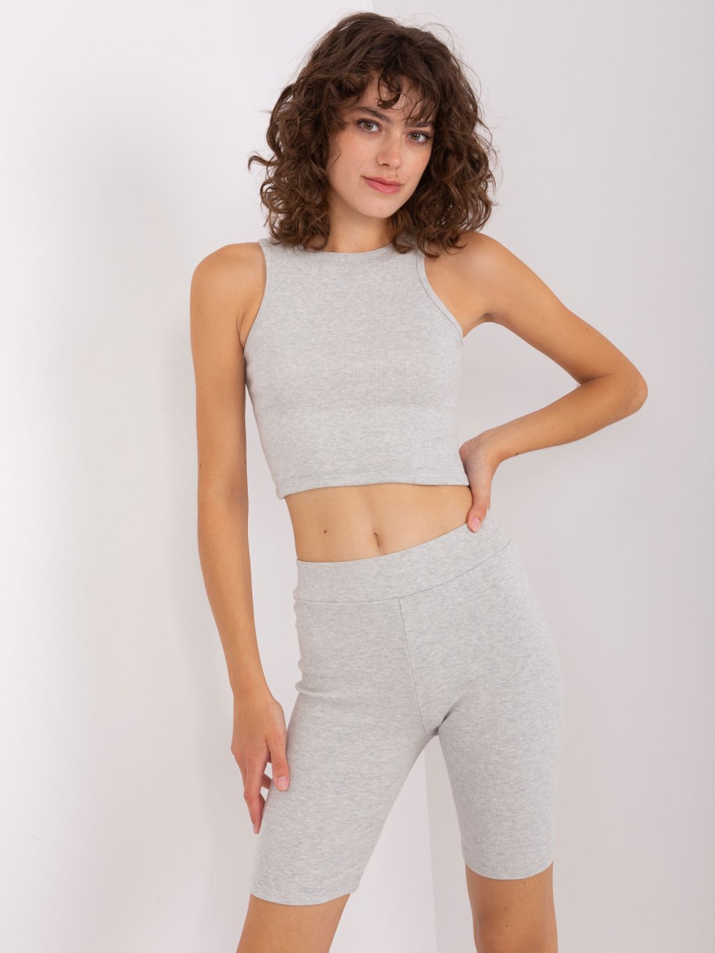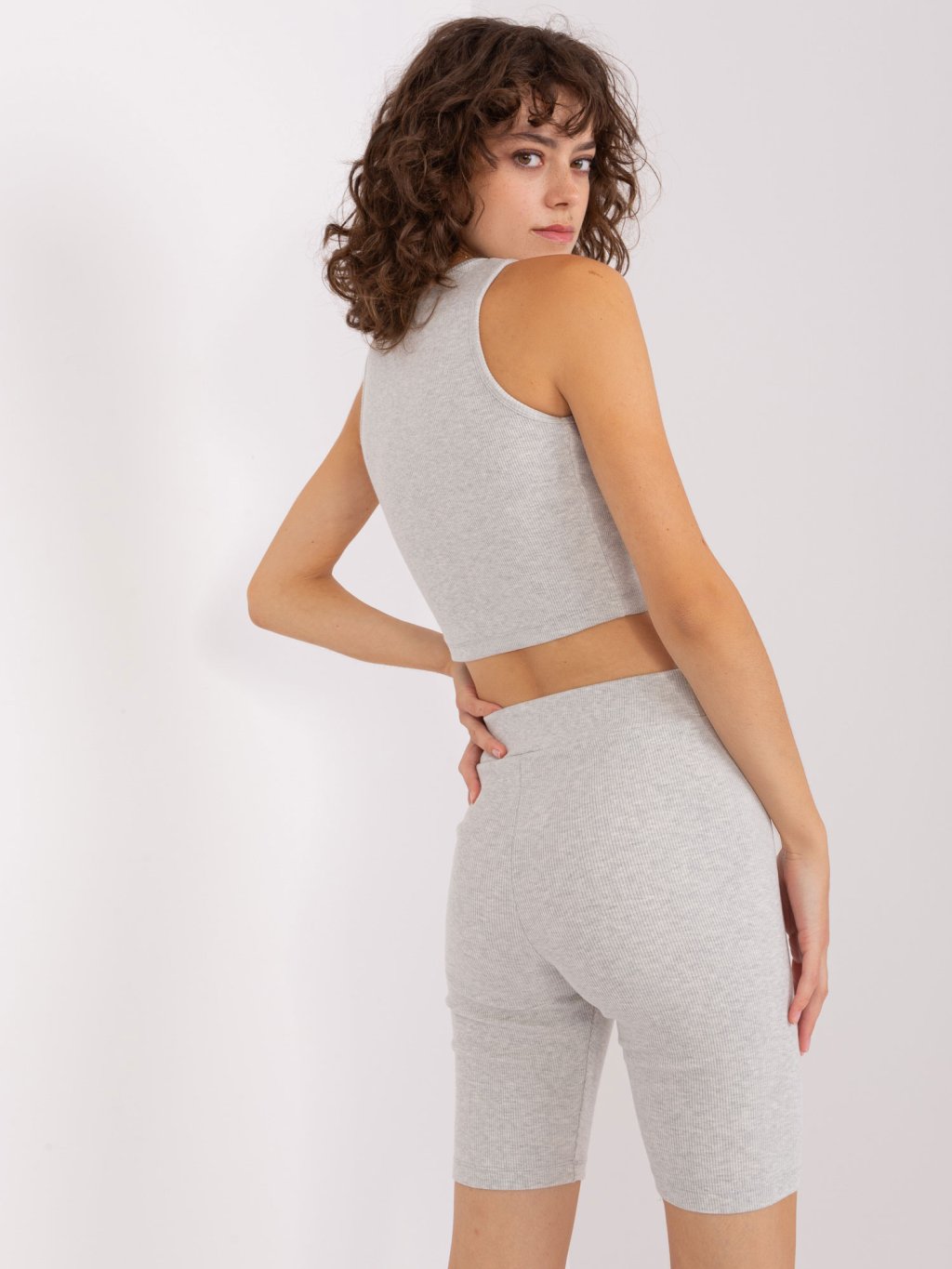 SVĚTLE ŠEDÝ TŘÍDÍLNÝ KOMPLET ŠORTEK, CROP TOPU A MIKINY