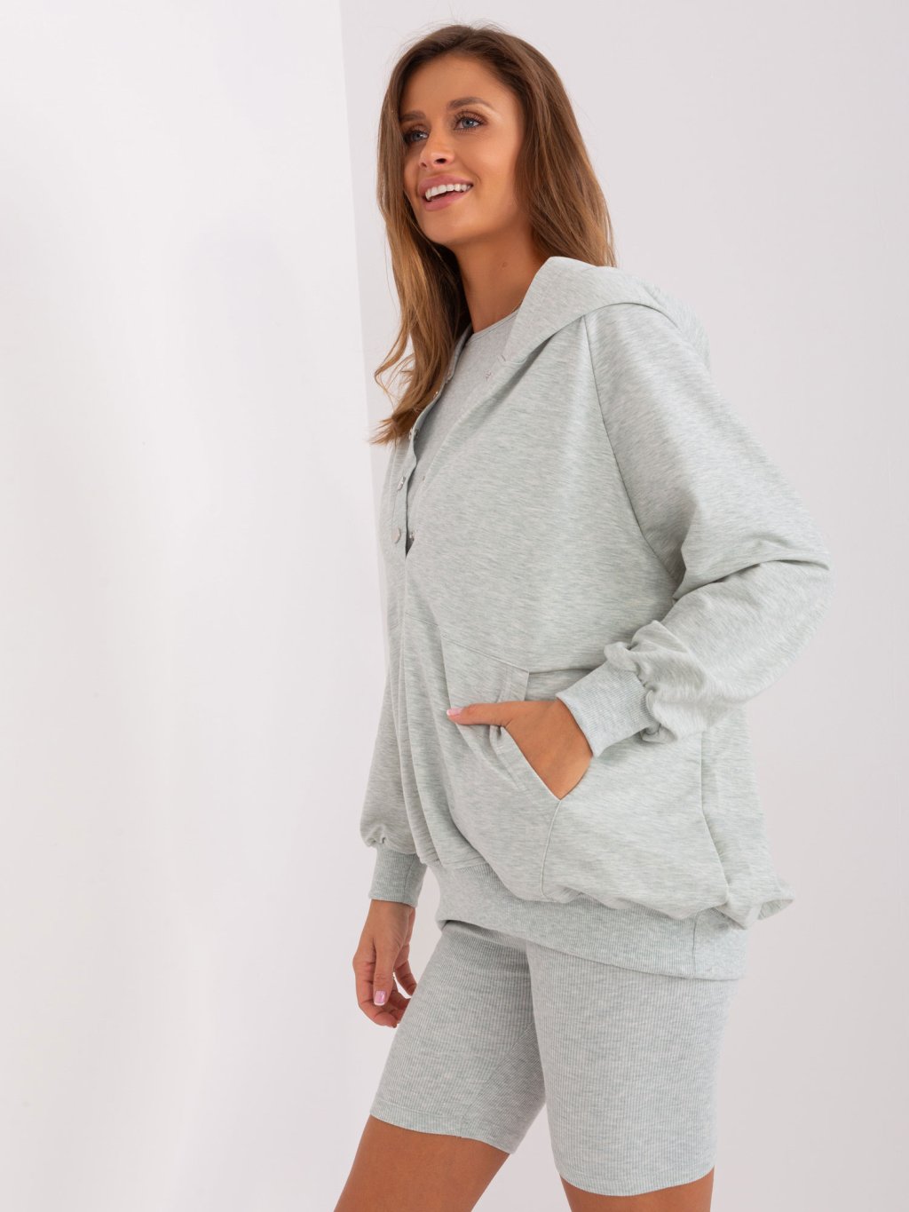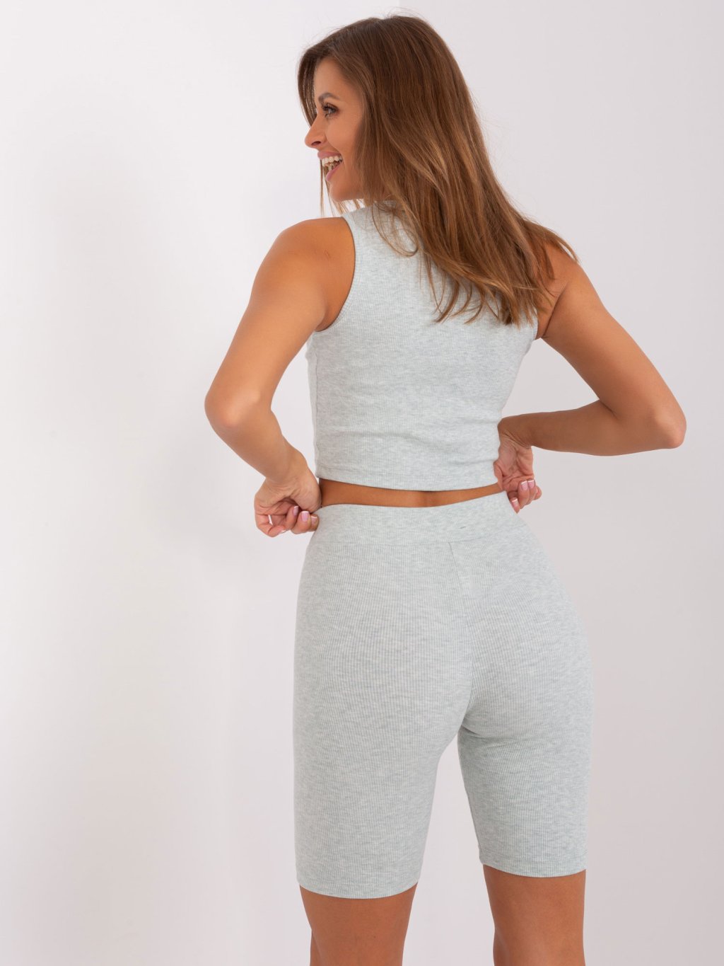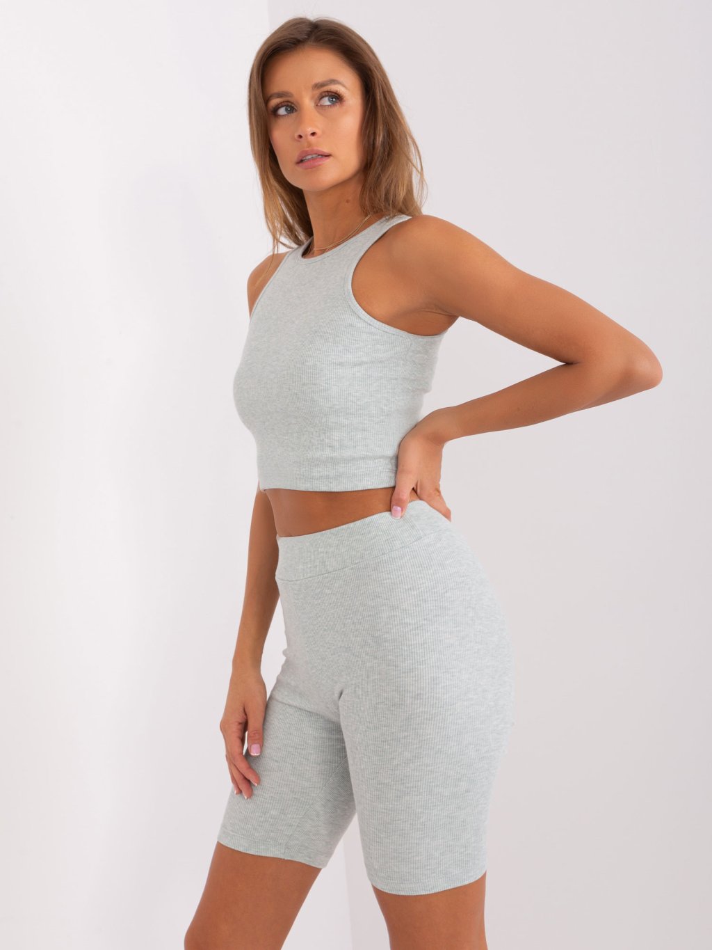 SVĚTLE ŠEDÝ TŘÍDÍLNÝ KOMPLET ŠORTEK, CROP TOPU A MIKINY