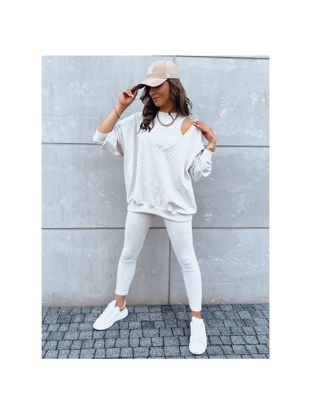 SVĚTLE BÉŽOVÝ ŽEBROVANÝ KOMPLET MIKINY, LEGÍN A TOPU ASTRAL ATTIRE
