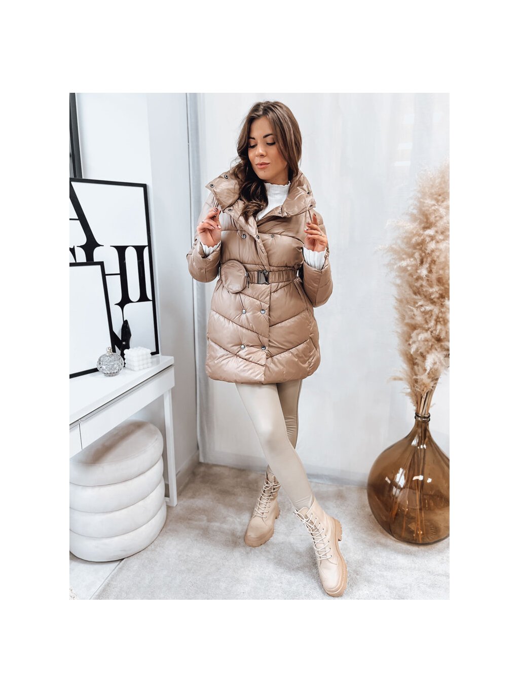 TMAVĚ BÉŽOVÁ PROŠÍVANÁ BUNDA S OZDOBNOU KAPSIČKOU BLOOM