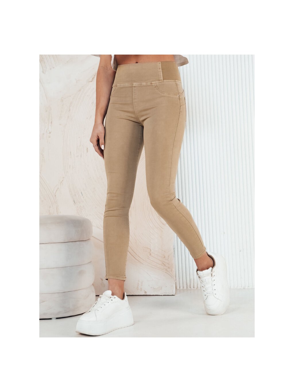 TMAVĚ BÉŽOVÉ DŽÍNOVÉ KALHOTY S GUMOU V PASE ALTET