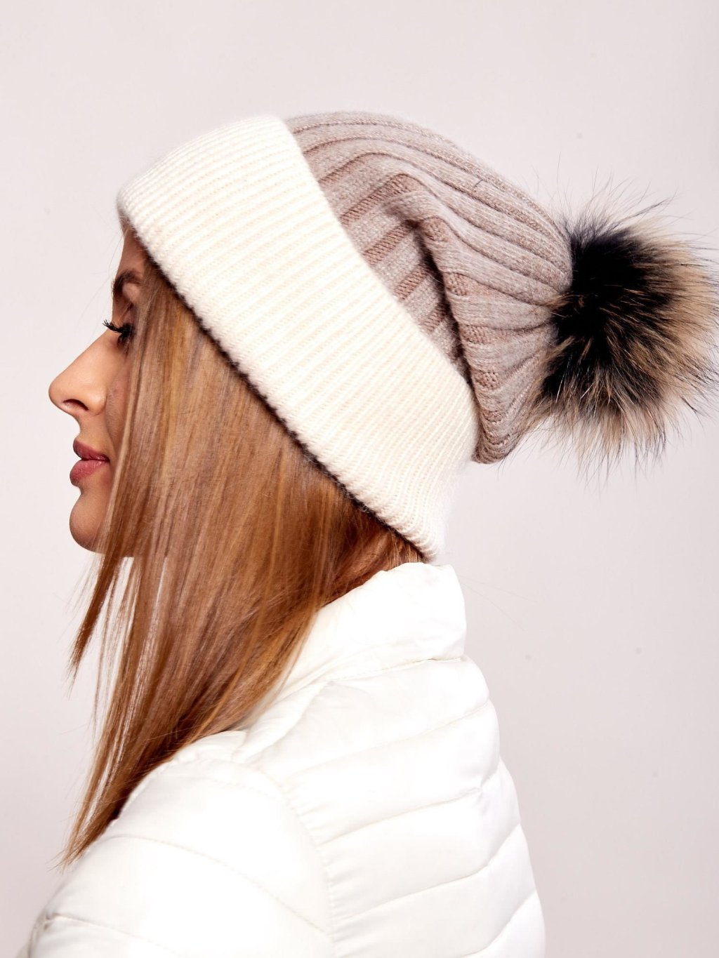 KRÉMOVO-HNĚDÁ DÁMSKÁ ČEPICE S BAMBULÍ