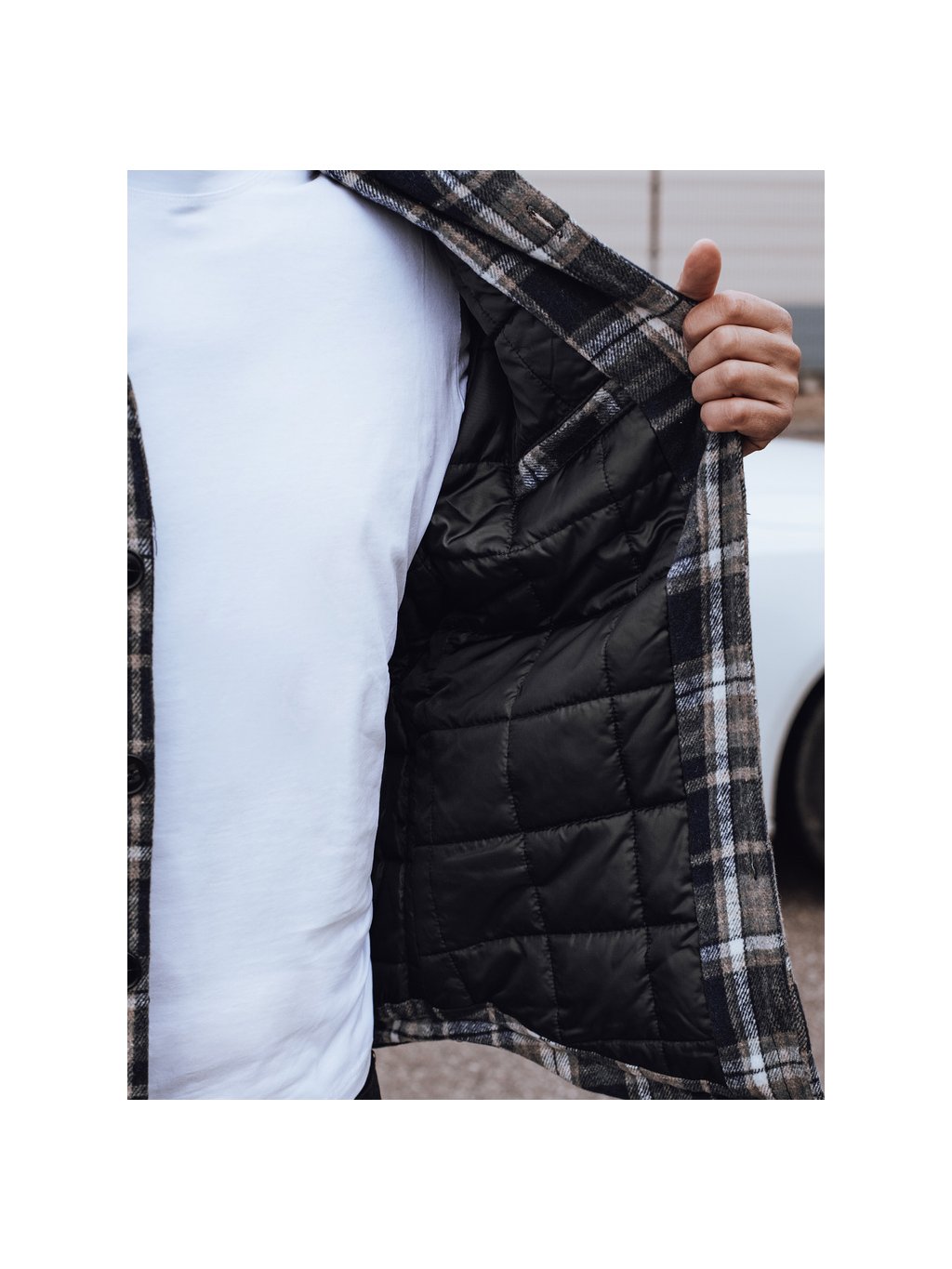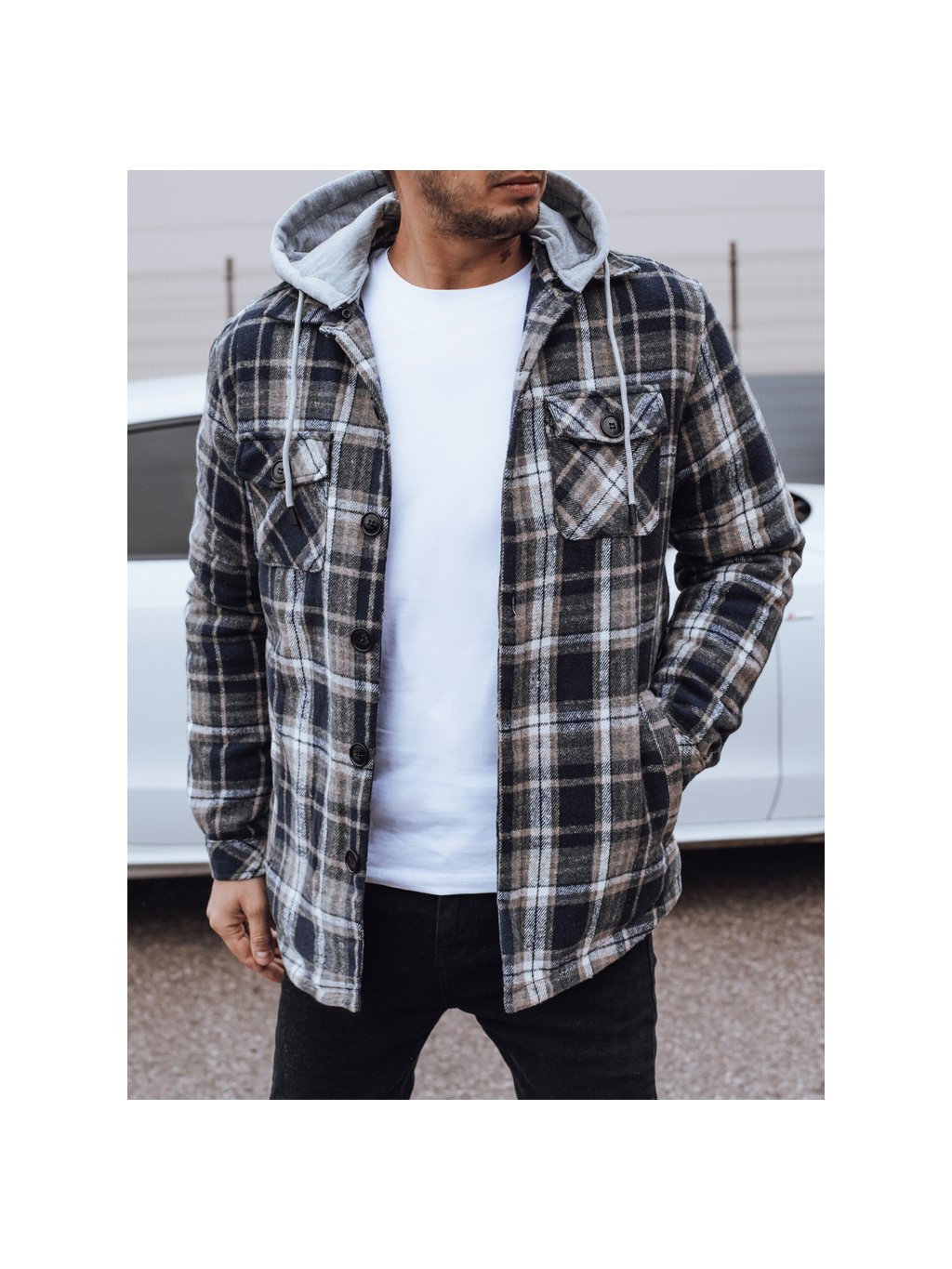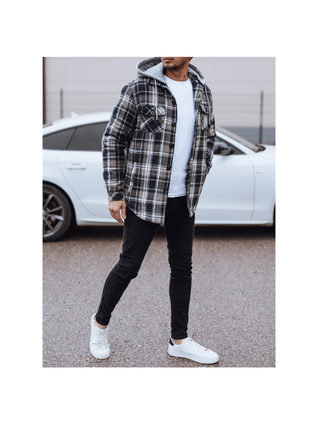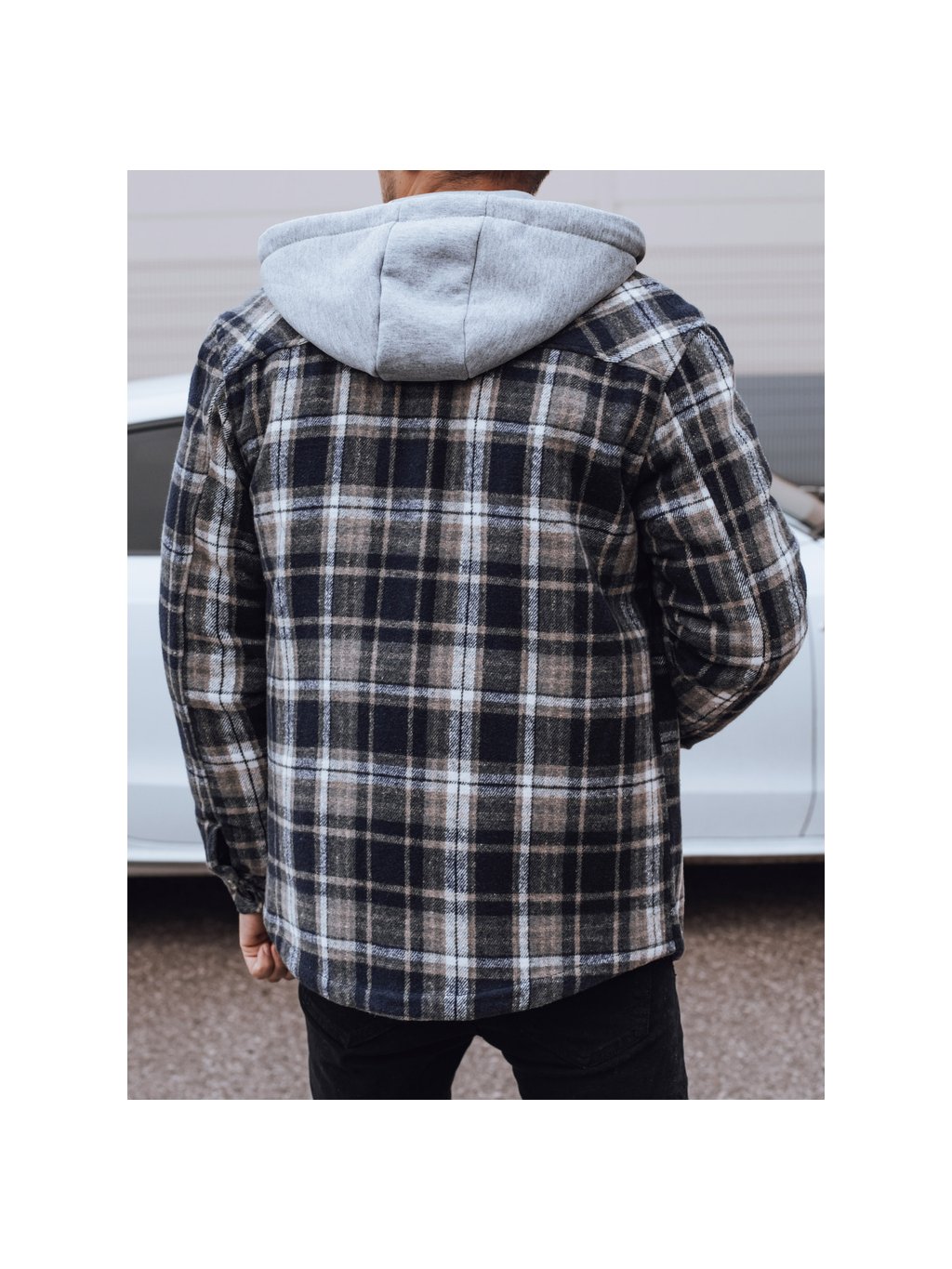 TMAVĚ MODRÁ KÁROVANÁ PÁNSKÁ PŘECHODOVÁ BUNDA S KAPUCÍ