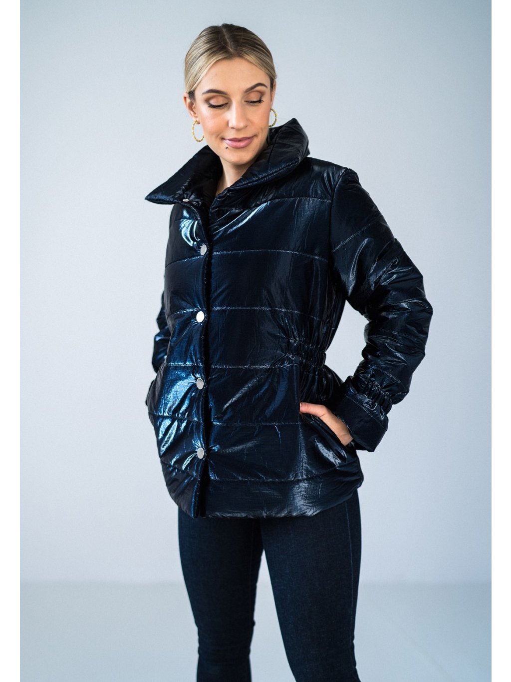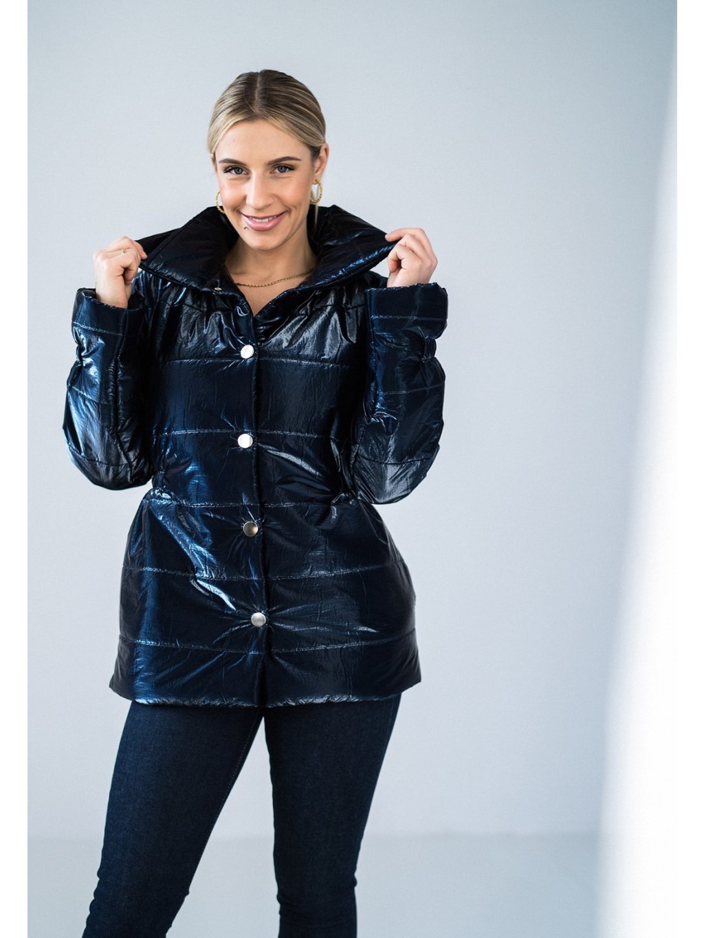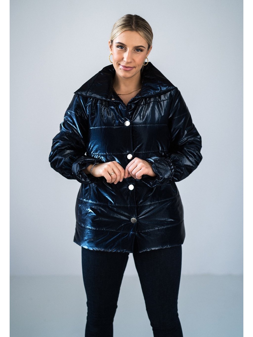 TMAVĚ MODRÁ LESKLÁ PROŠÍVANÁ BUNDA