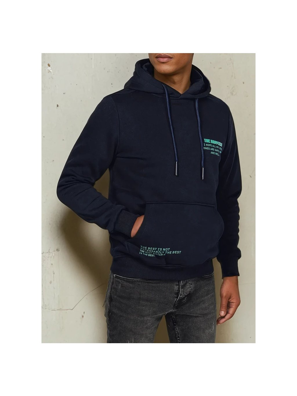 TMAVĚ MODRÁ MIKINA S KAPUCÍ