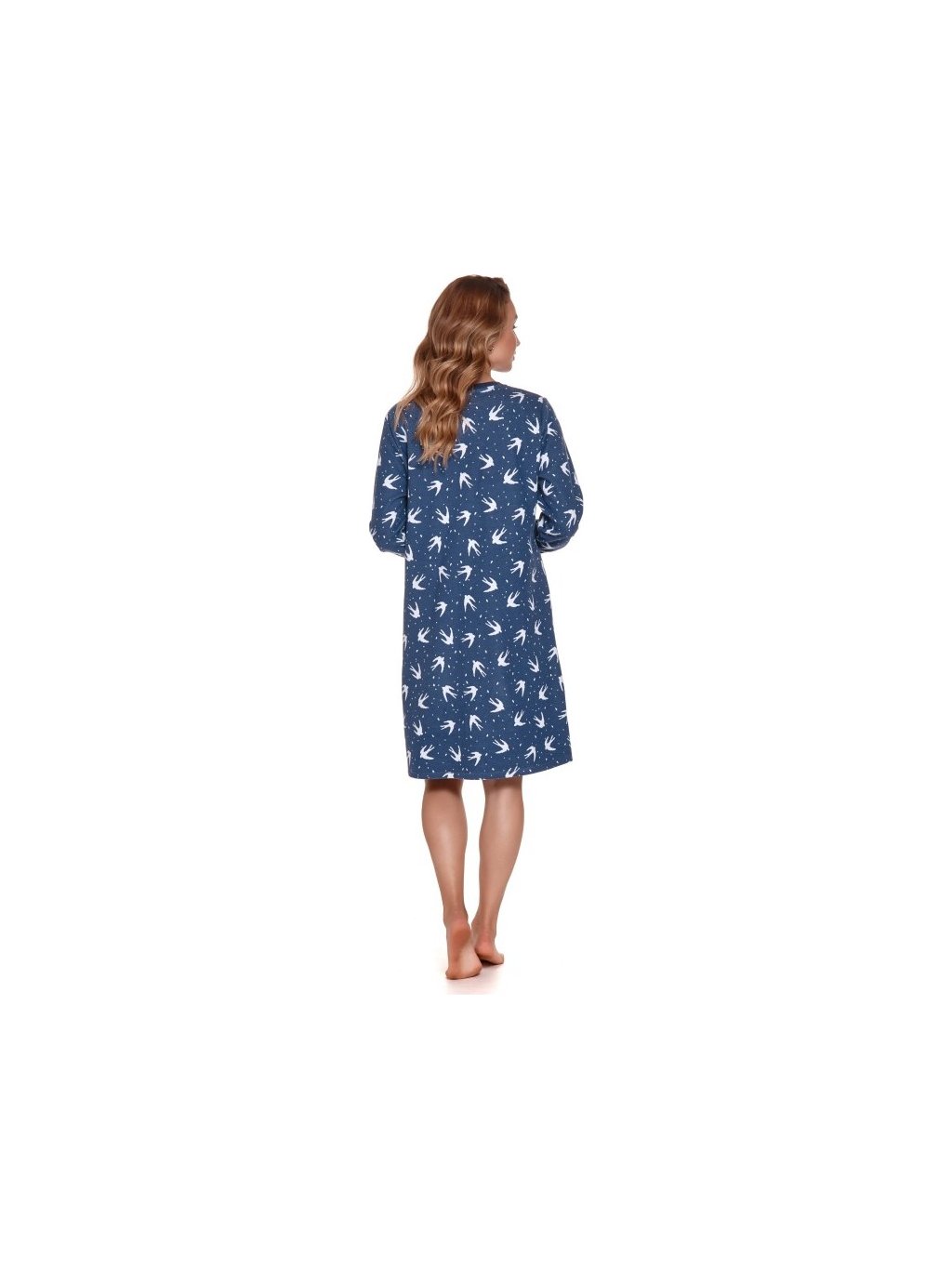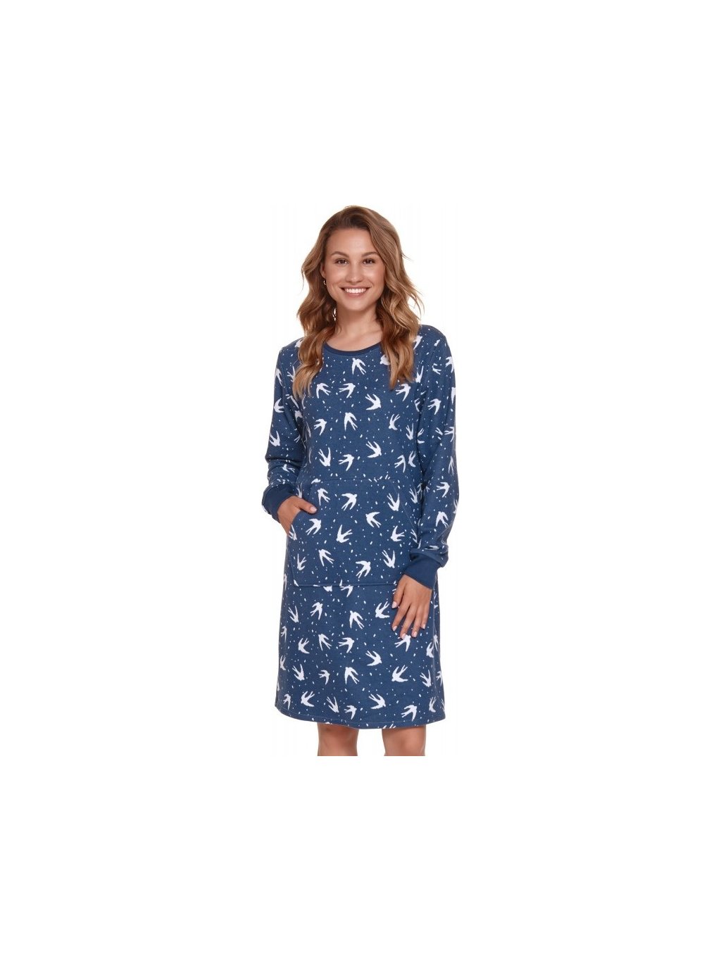 TMAVĚ MODRÁ NOČNÍ KOŠILE S DLOUHÝM RUKÁVEM - POTISK VLAŠTOVEK