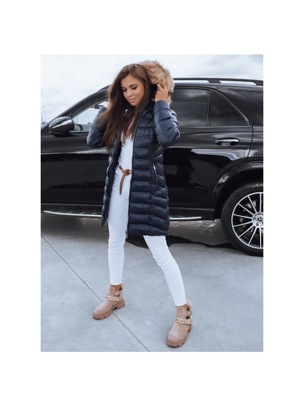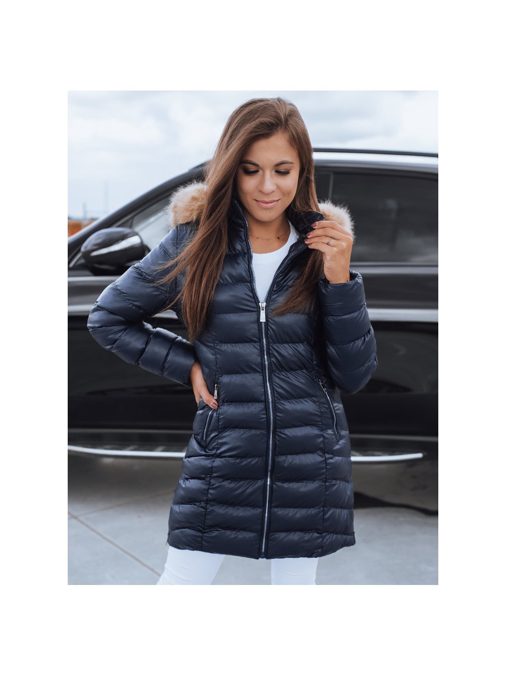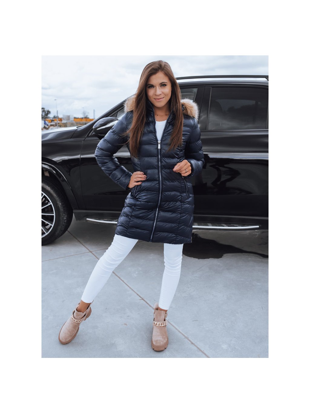 TMAVĚ MODRÁ PROŠÍVANÁ LESKLÁ BUNDA REBECCA