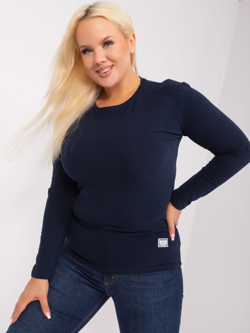 TMAVĚ MODRÉ BASIC TRIČKO S DLOUHÝM RUKÁVEM