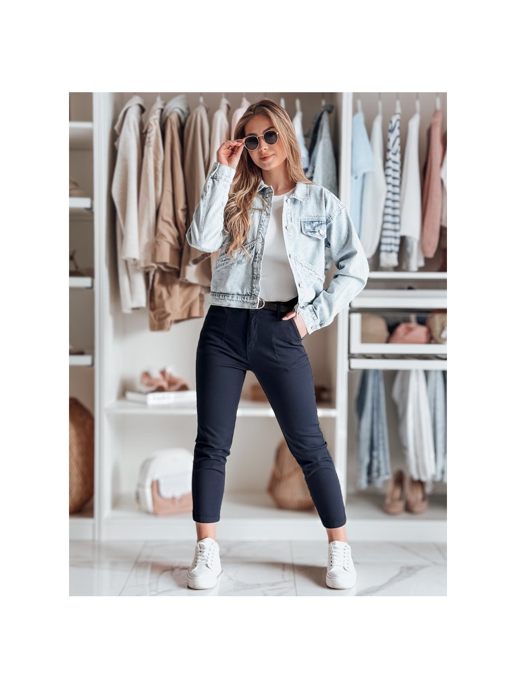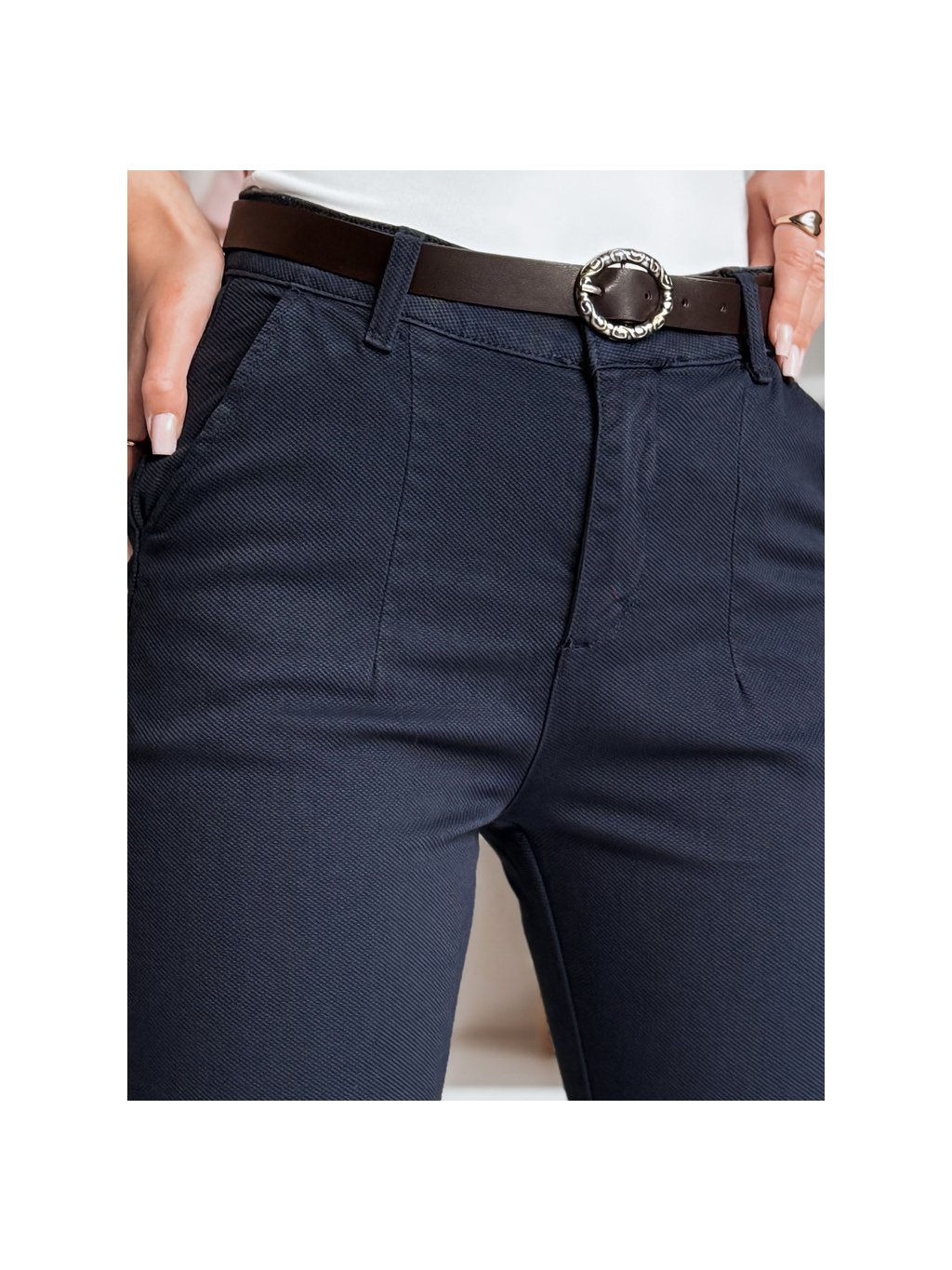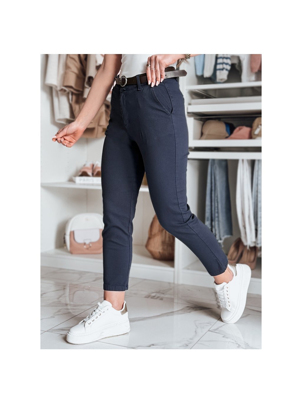 TMAVĚ MODRÉ DÁMSKÉ SLIM FIT KALHOTY S VYSOKÝM PASEM