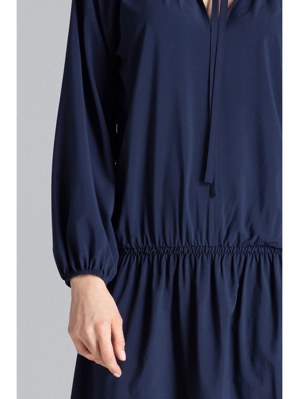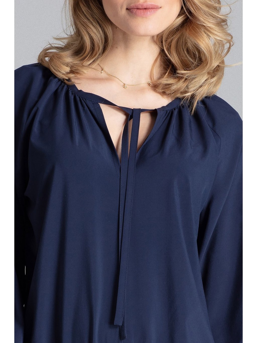 - Kulatý výstřih s vázáním.