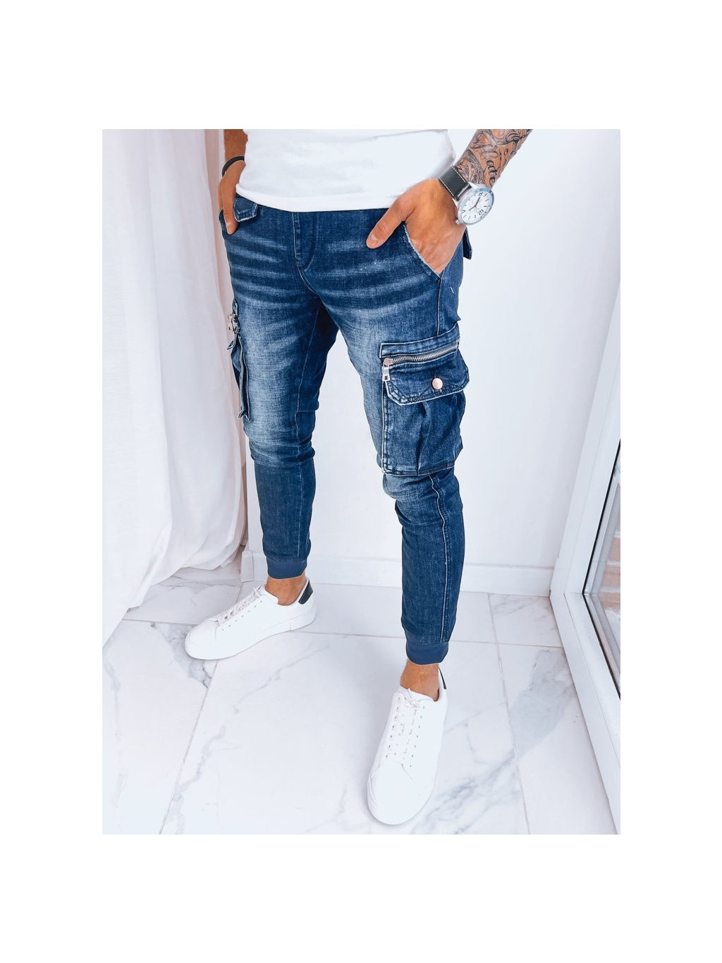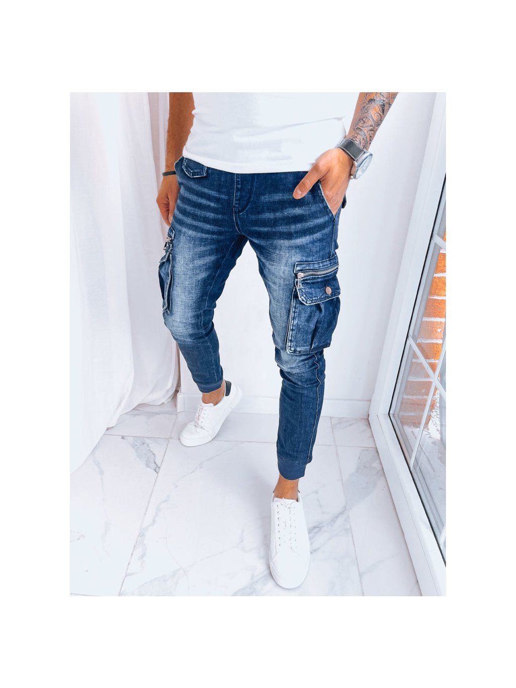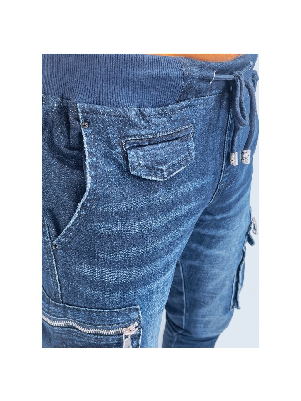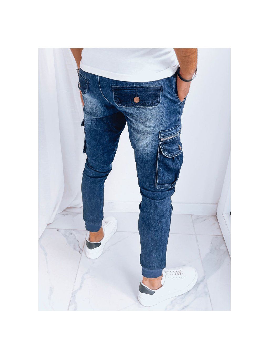 TMAVĚ MODRÉ PÁNSKÉ DŽÍNOVÉ JOGGERY S KAPSAMI