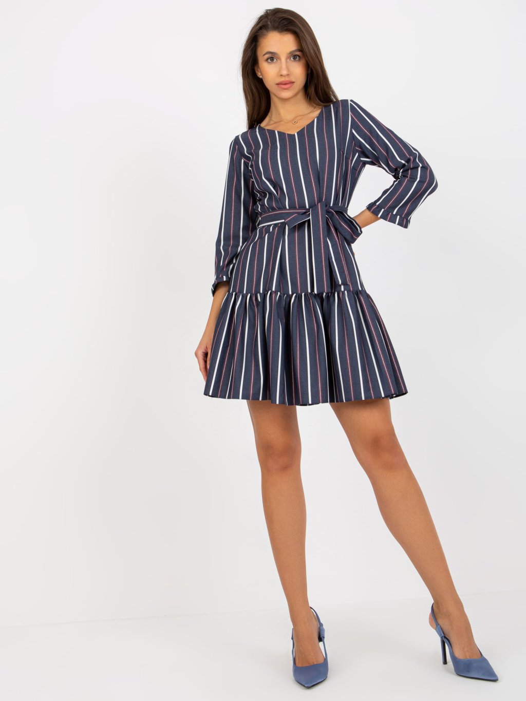 TMAVĚ MODRÉ ŠATY S PRUHY