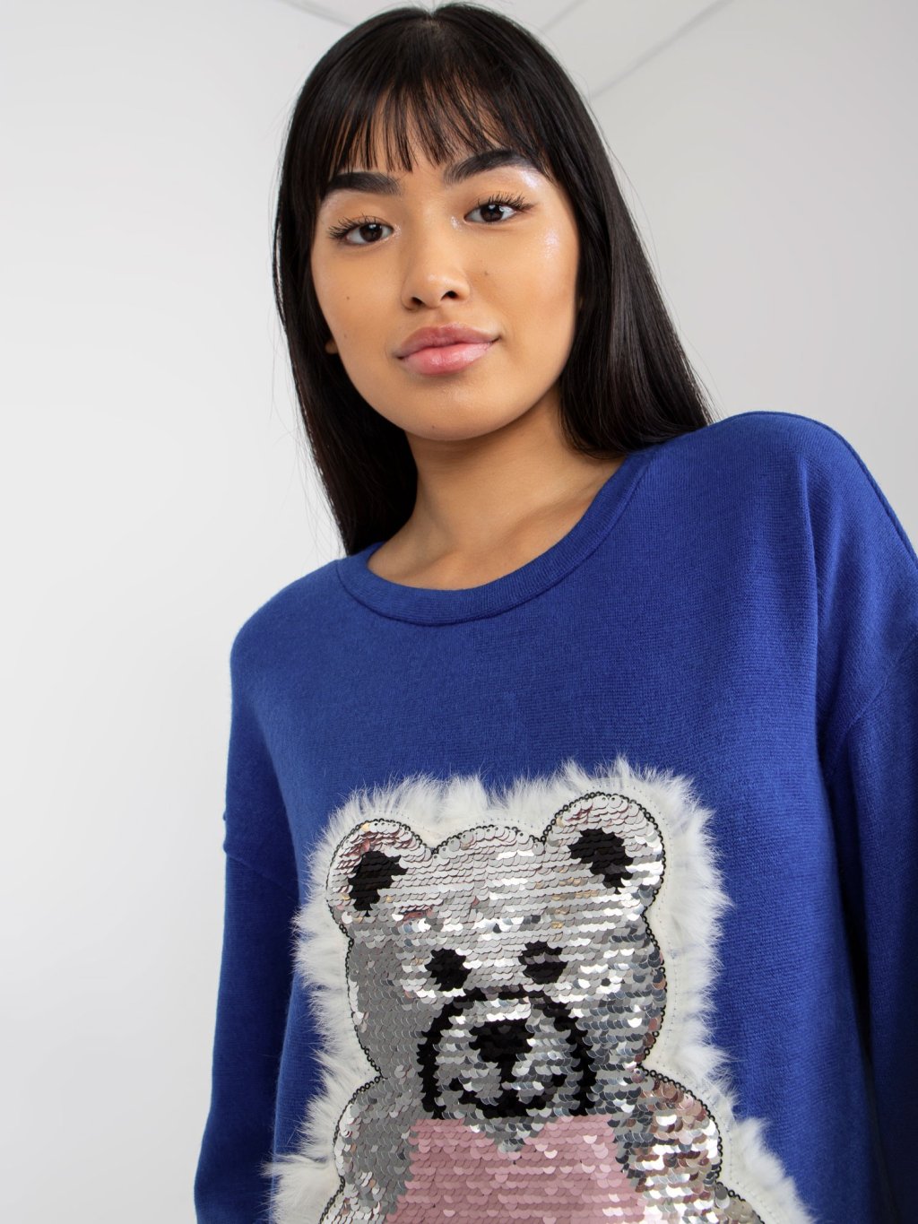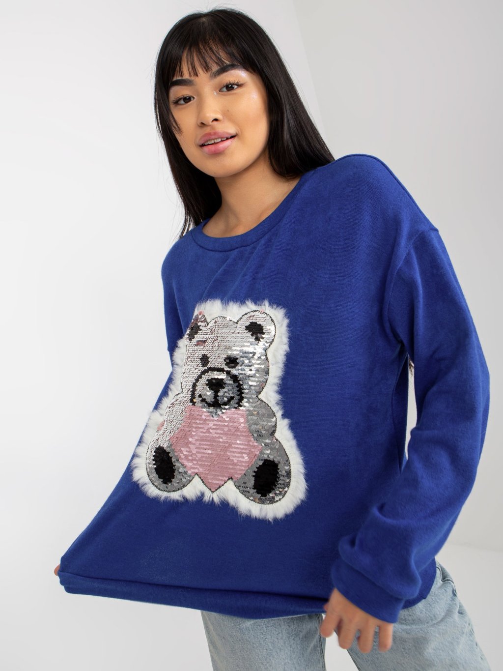 TMAVĚ MODRÝ SVETR S MEDVÍDKEM