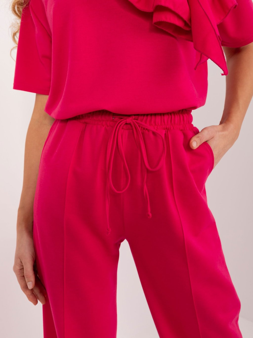 TMAVĚ RŮŽOVÉ ŠIROKÉ KALHOTY S VYSOKÝM PASEM