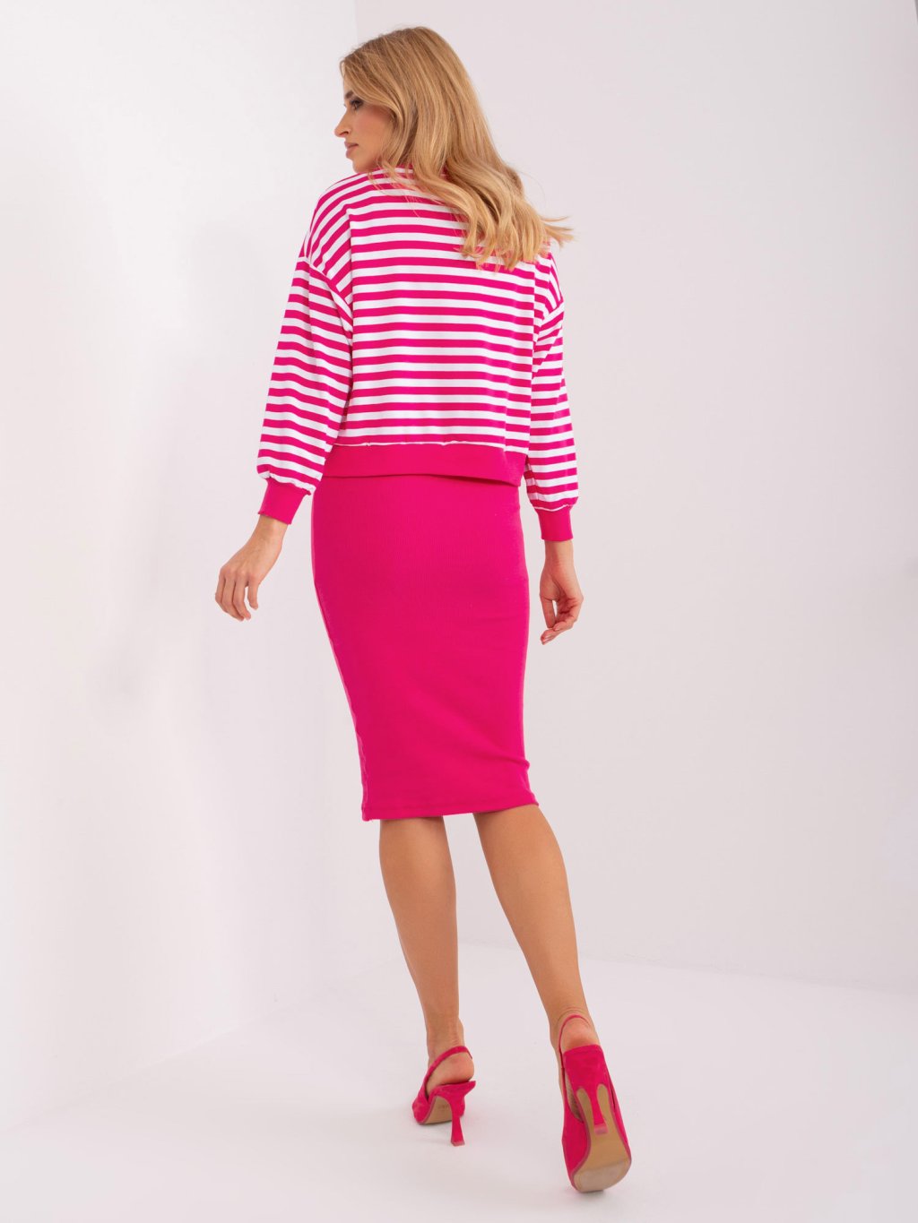 TMAVĚ RŮŽOVÝ KOMPLET MIDI ŠATŮ A PRUHOVANÉ HALENKY