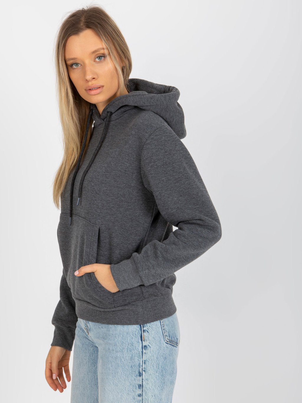 TMAVĚ ŠEDÁ DÁMSKÁ MIKINA S KAPUCÍ