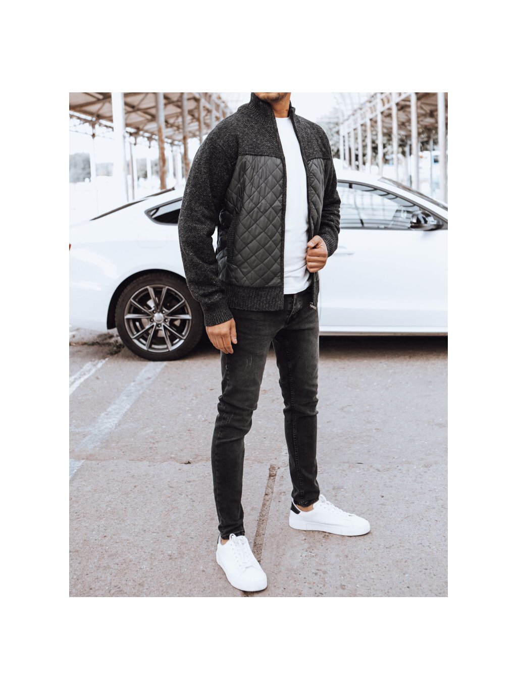 TMAVĚ ŠEDÁ PŘECHODOVÁ PROŠÍVANÁ BUNDA