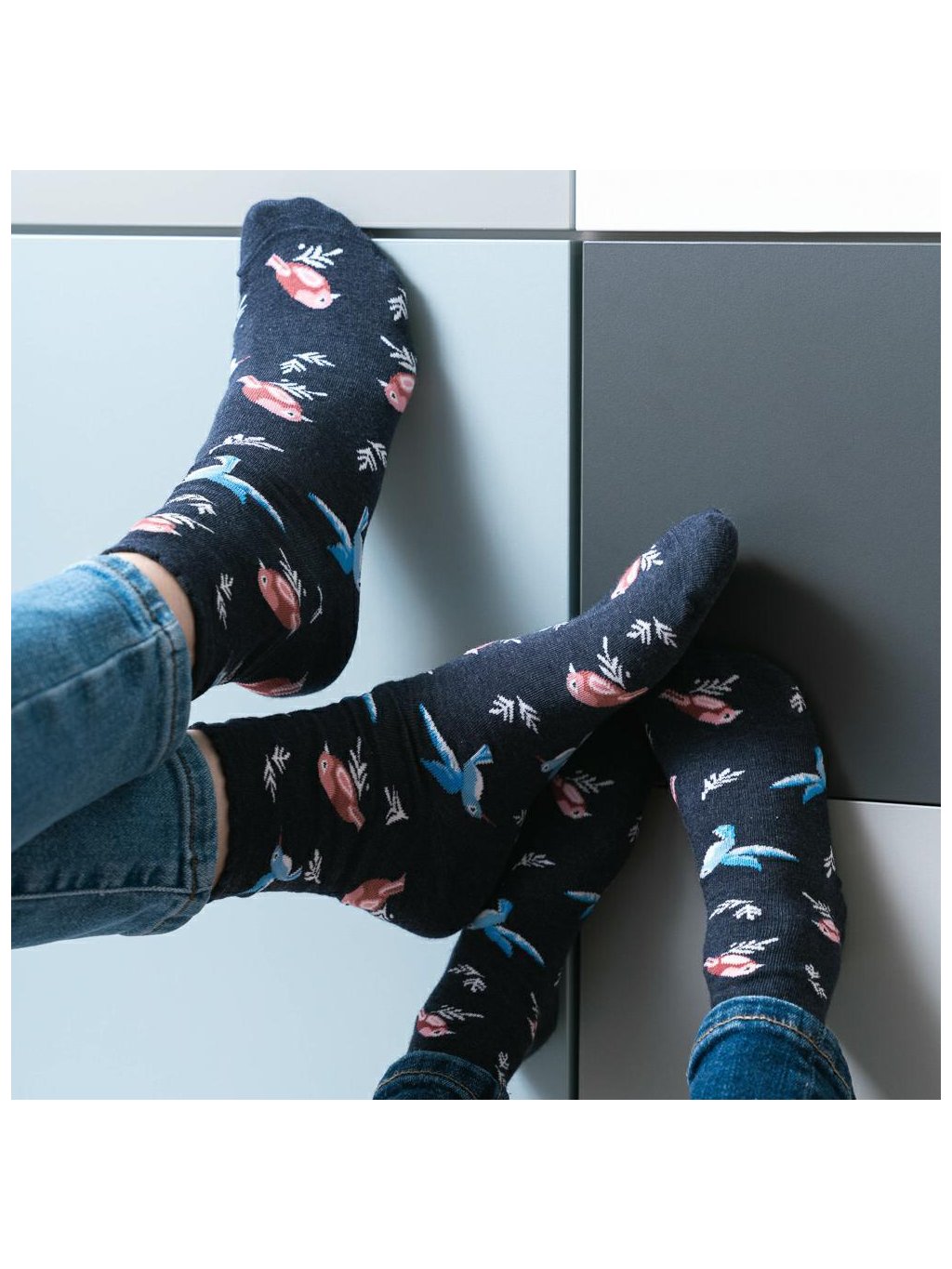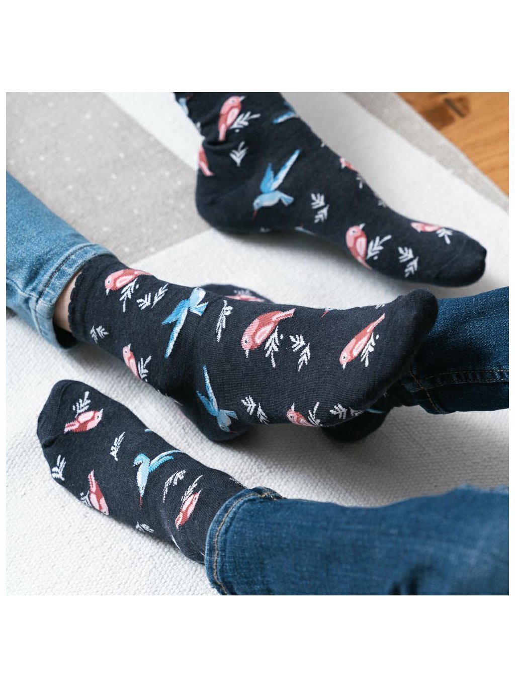 TMAVĚ ŠEDÉ DÍVČÍ PONOŽKY S PTÁČKY ART.084