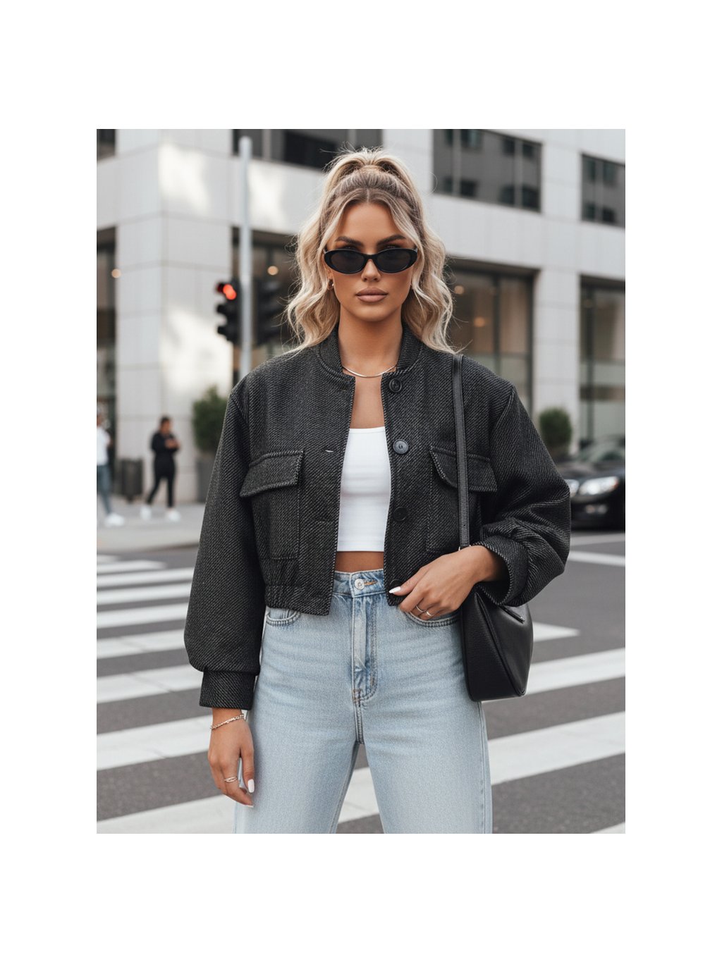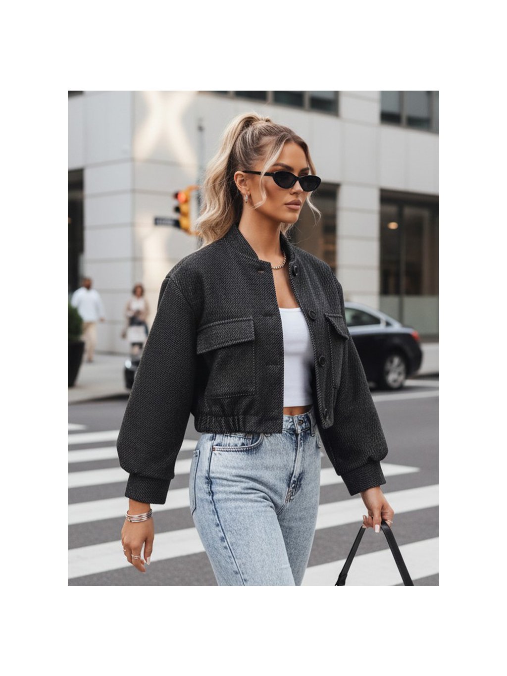 TMAVĚ ŠEDÝ KRÁTKÝ BOMBER HONES