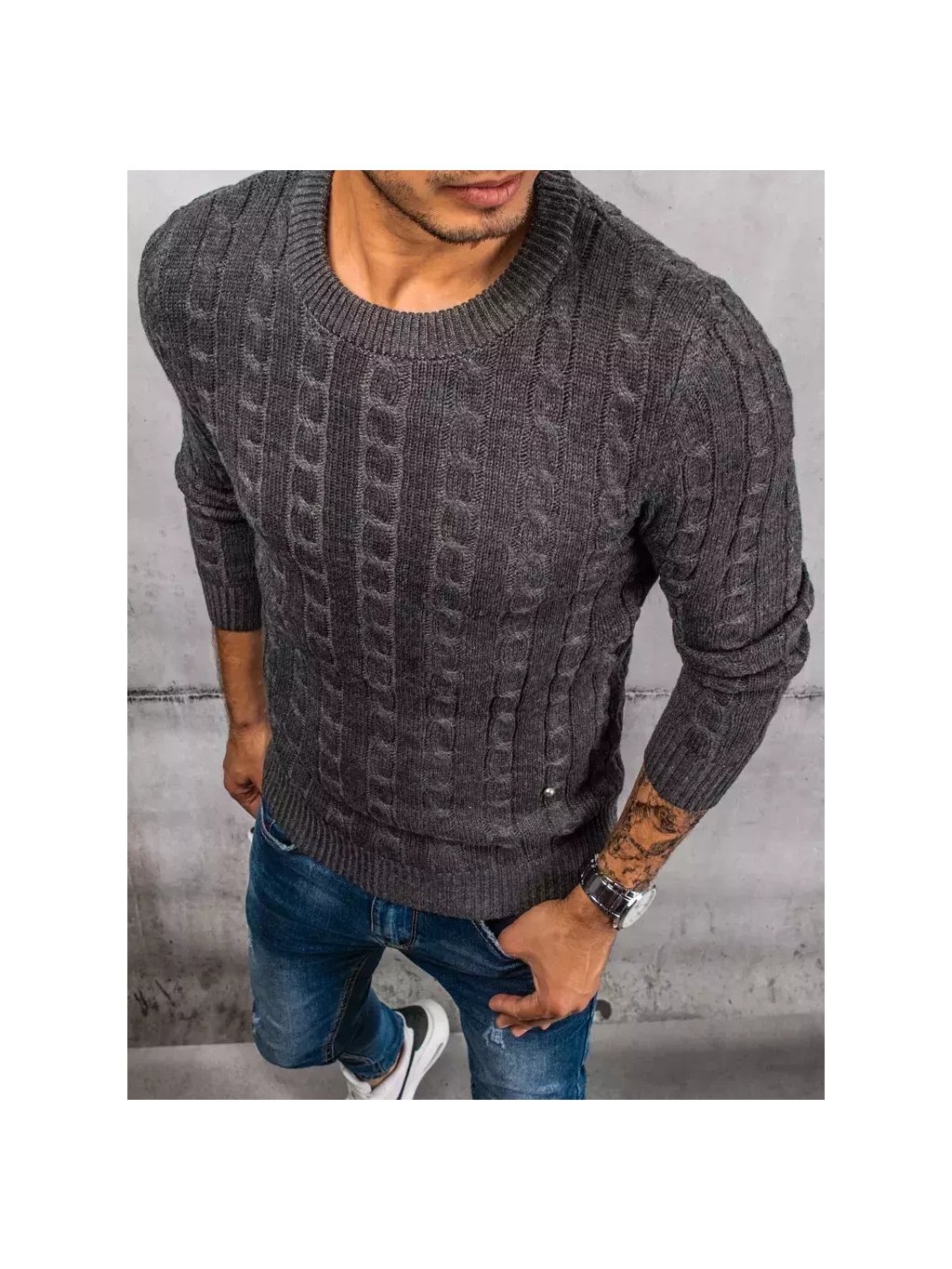 TMAVĚ ŠEDÝ PLETENÝ PÁNSKÝ SVETR