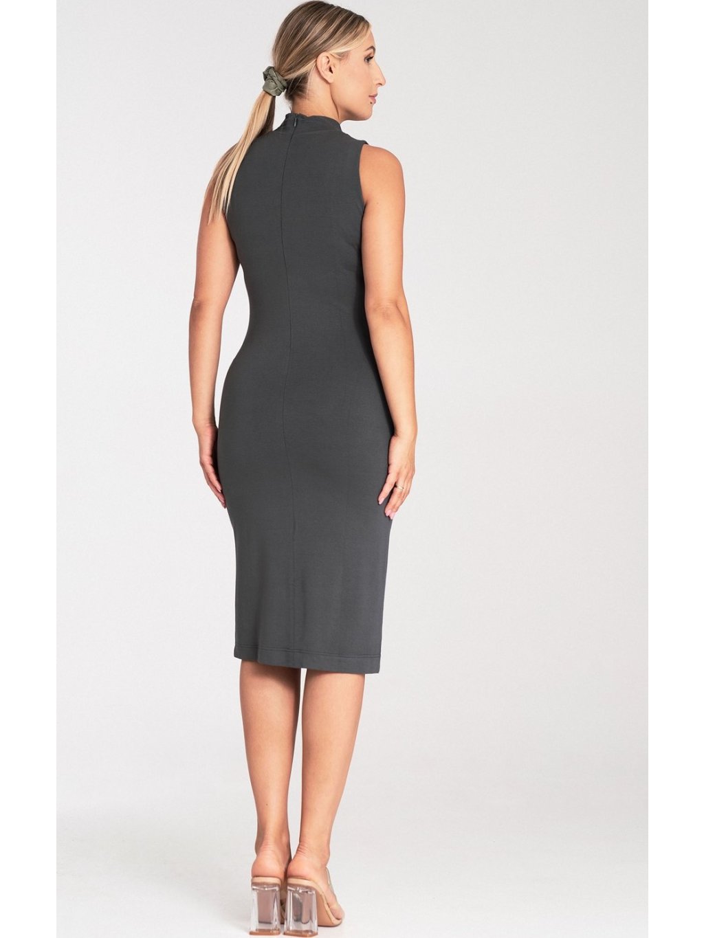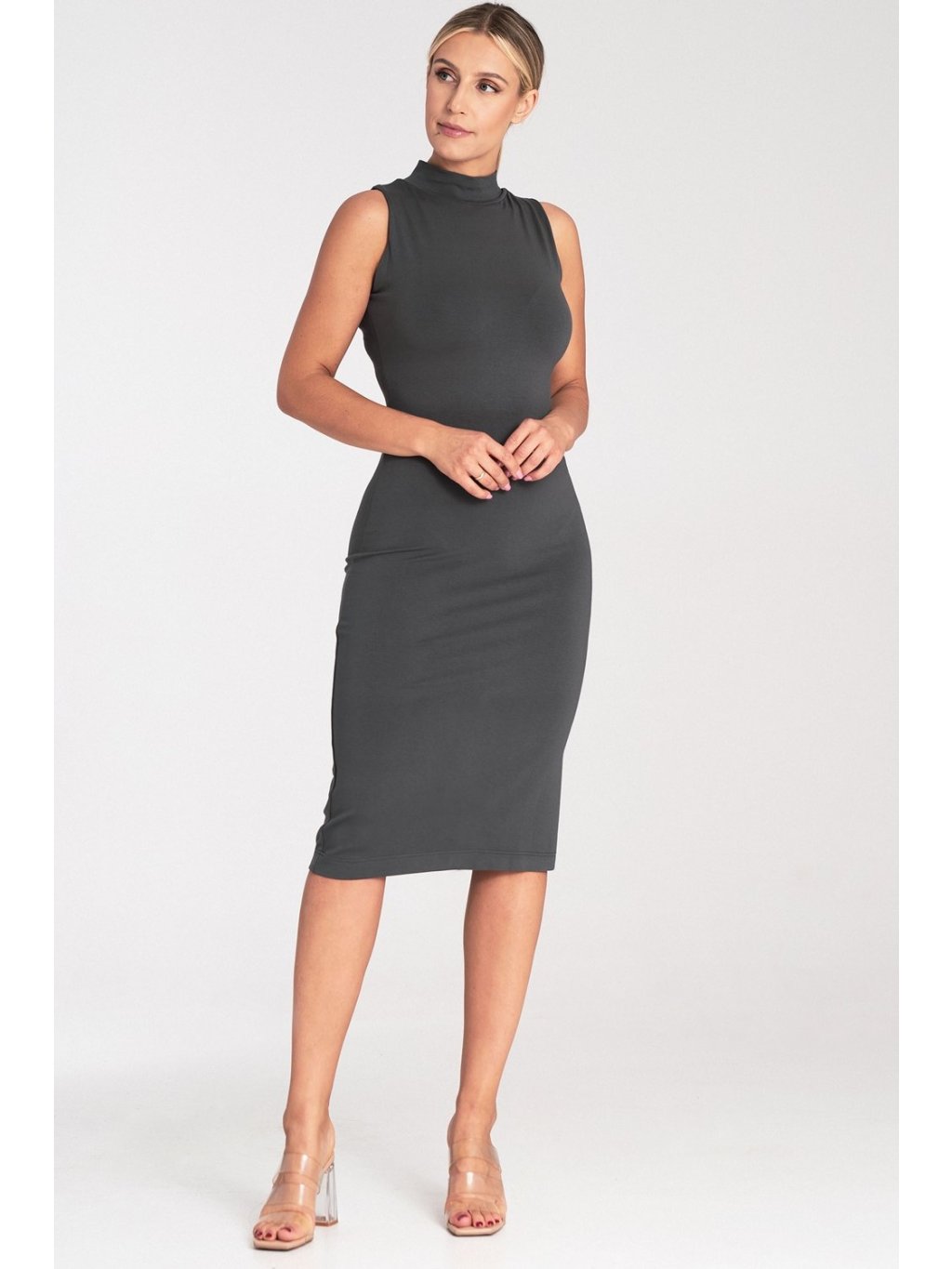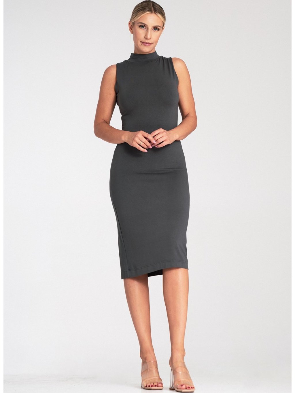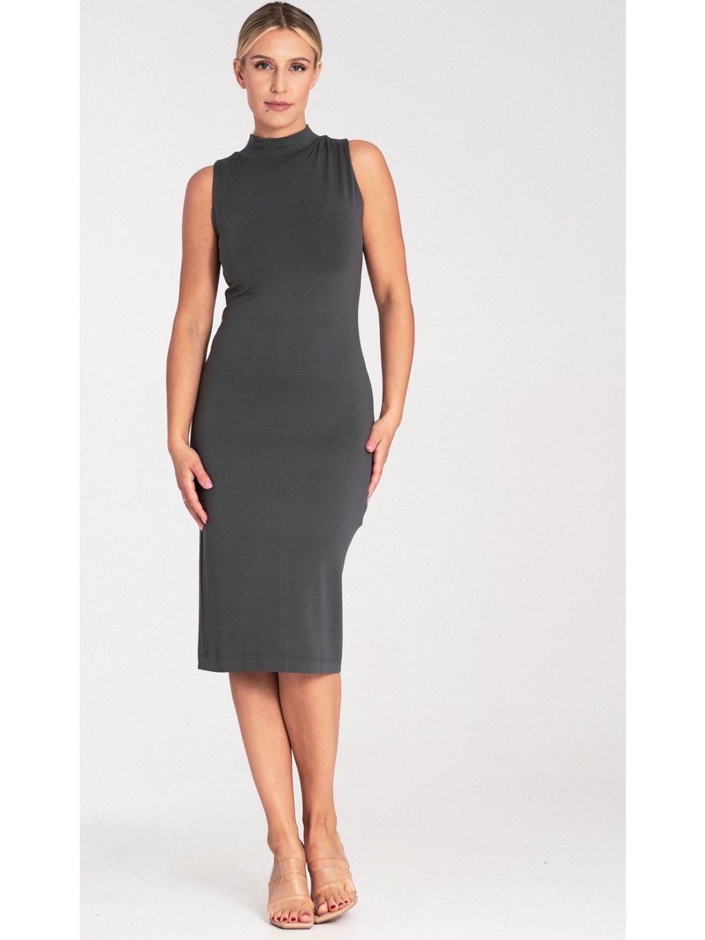 TMAVĚ VYPASOVANÉ VISKÓZOVÉ ŠATY BEZ RUKÁVŮ
