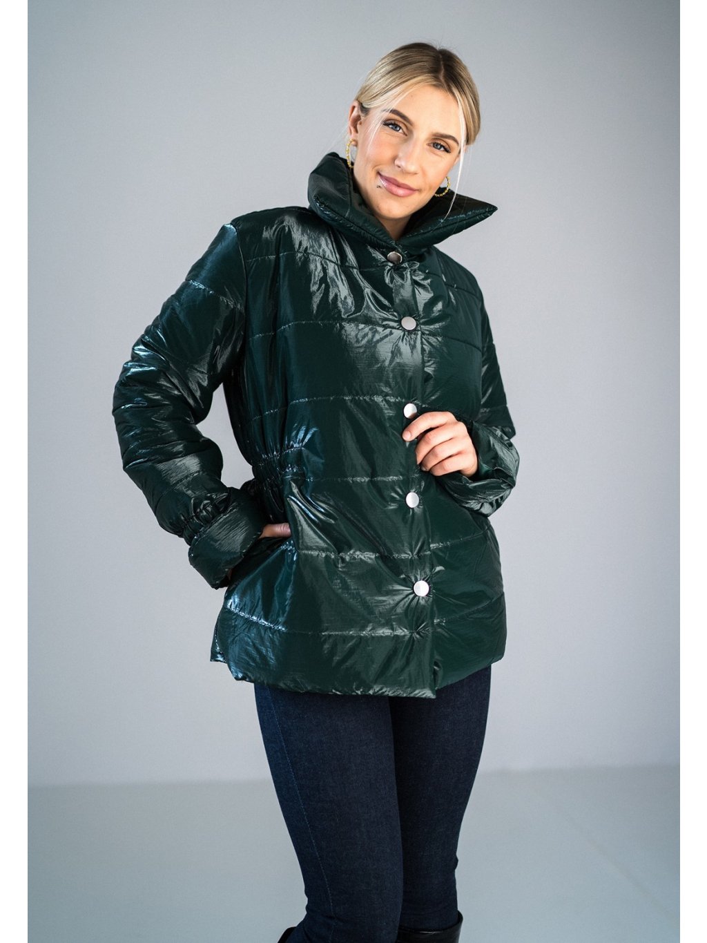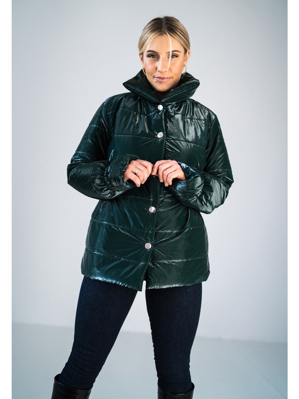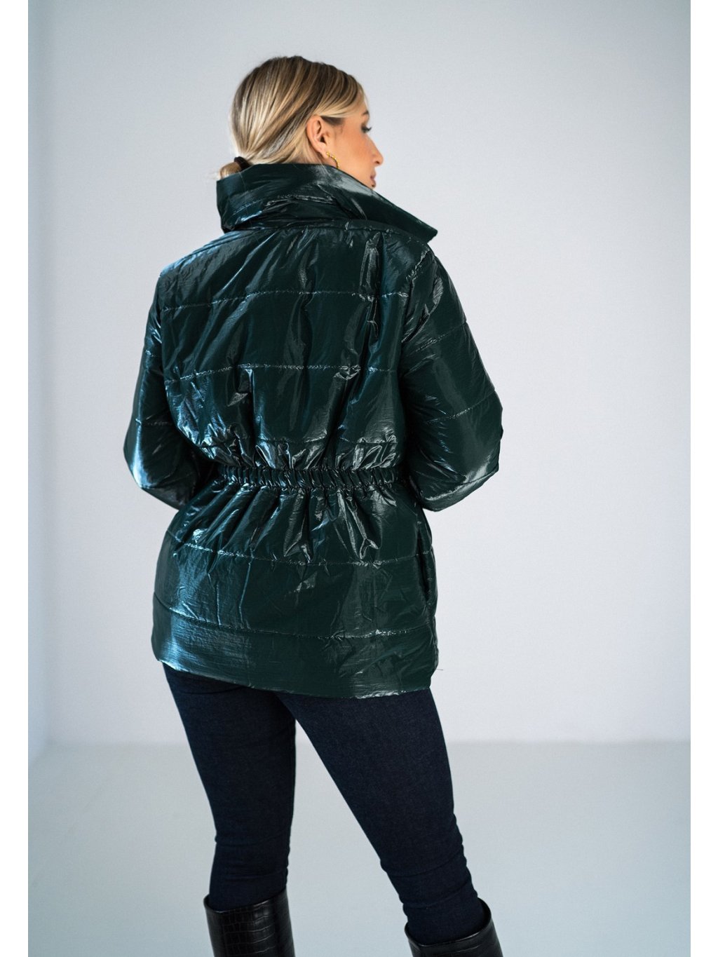 TMAVĚ ZELENÁ LESKLÁ PROŠÍVANÁ BUNDA