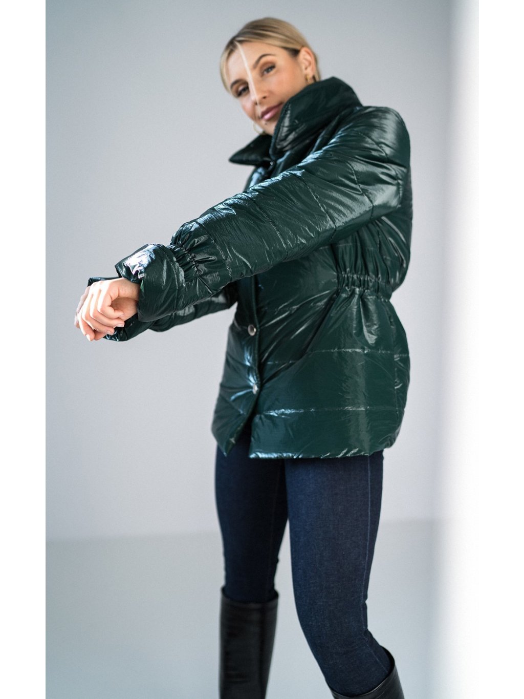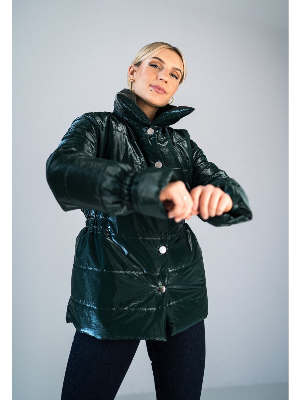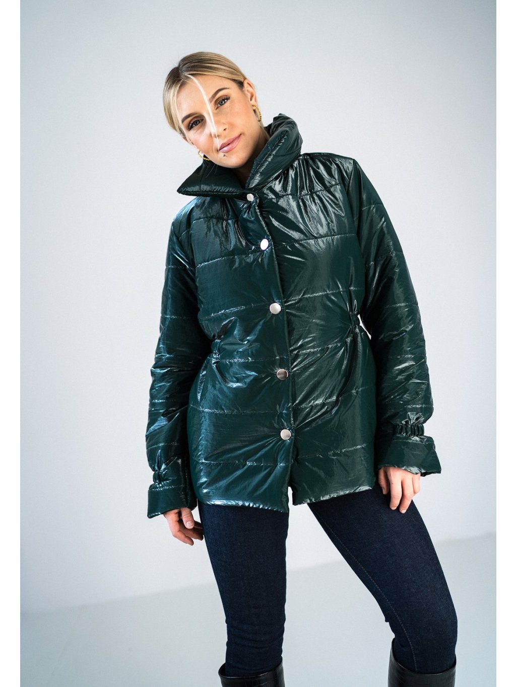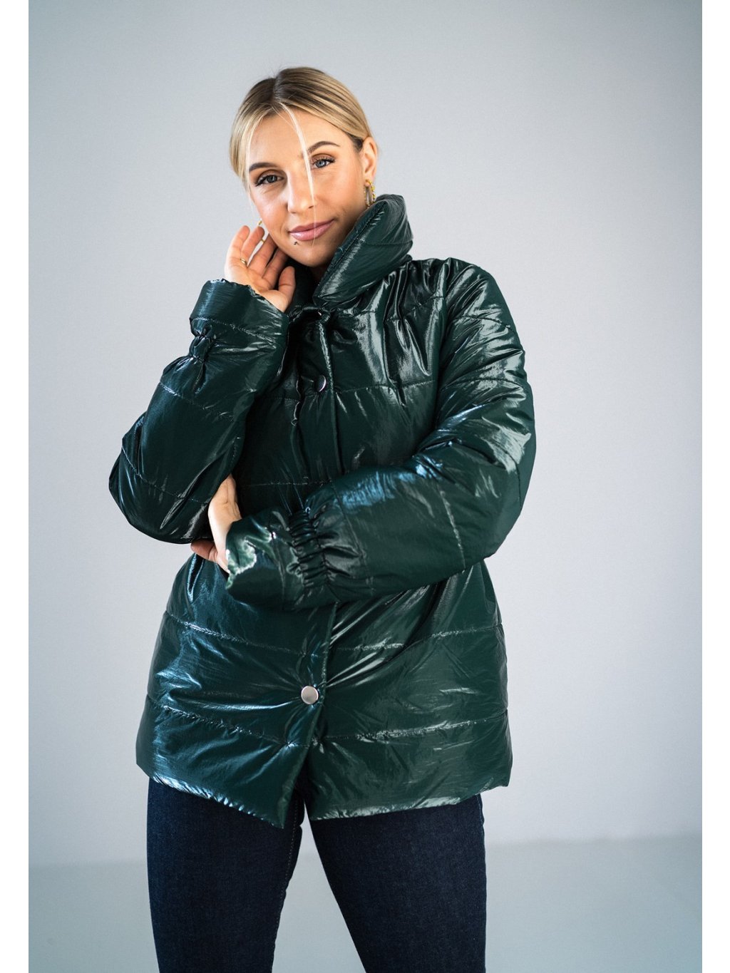 TMAVĚ ZELENÁ LESKLÁ PROŠÍVANÁ BUNDA
