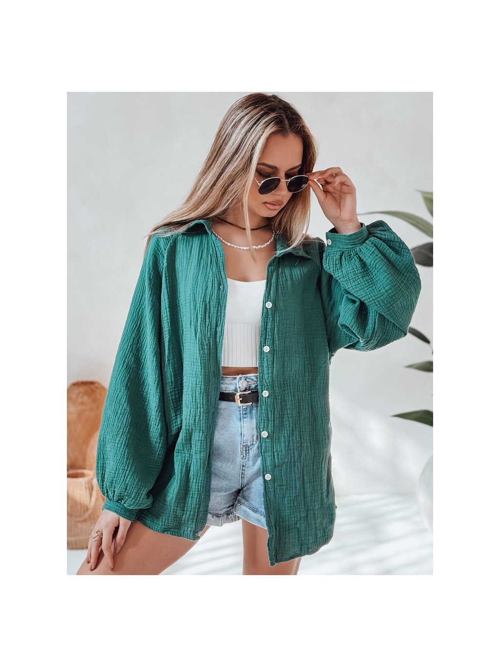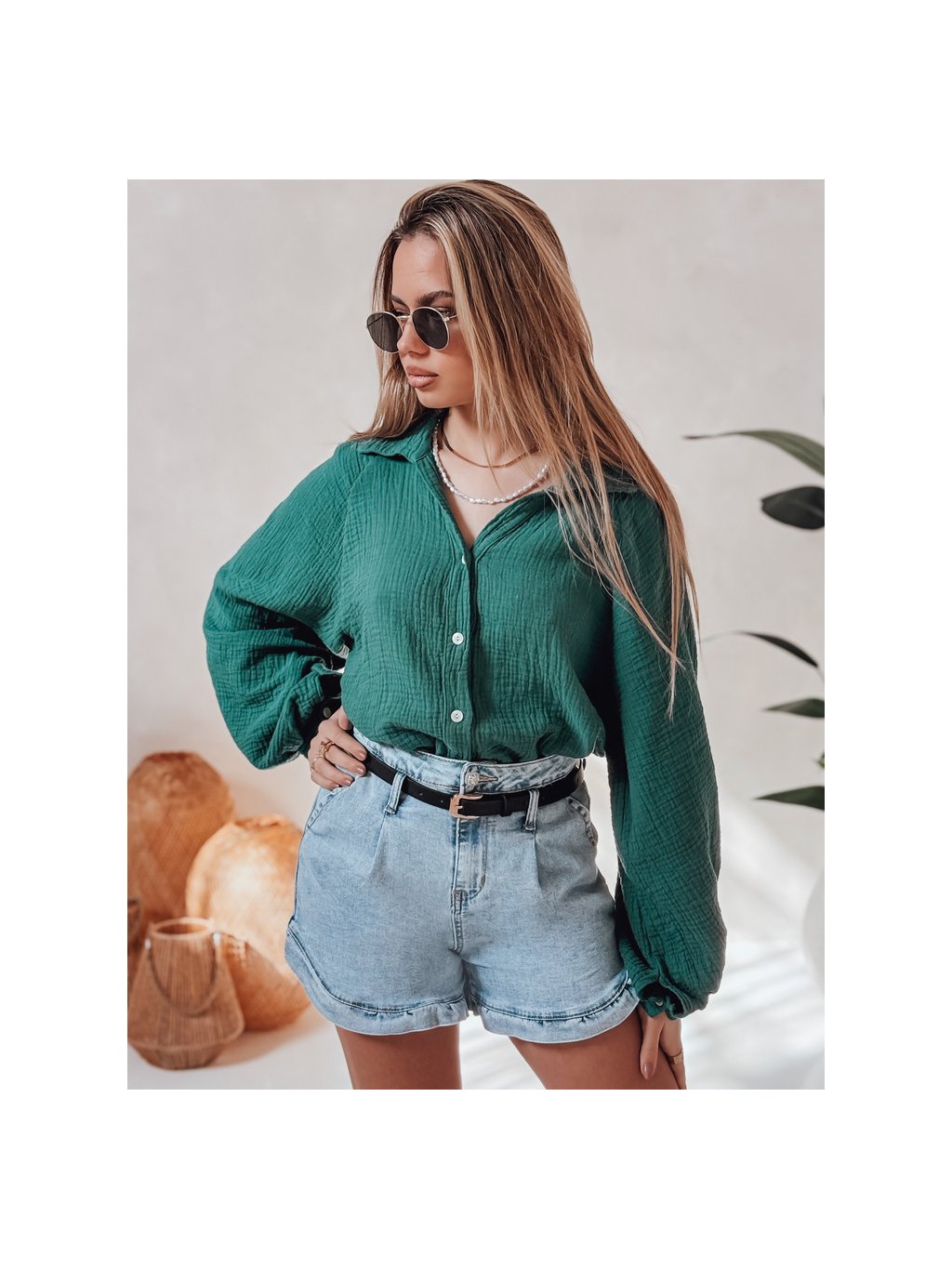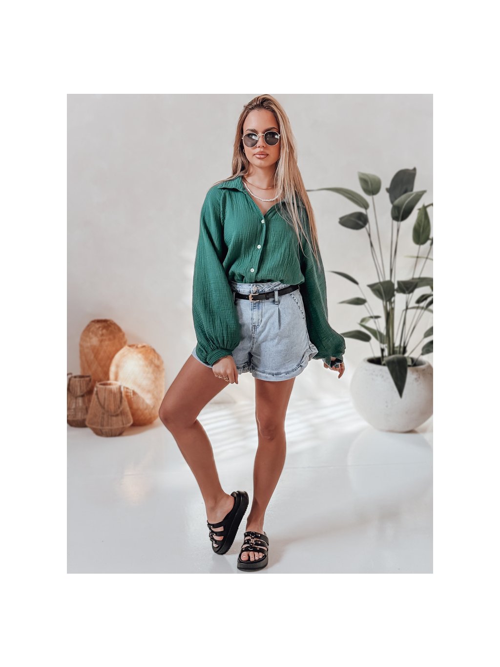 TMAVĚ ZELENÁ OVERSIZE DÁMSKÁ MUŠELÍNOVÁ KOŠILE MUSLINEA
