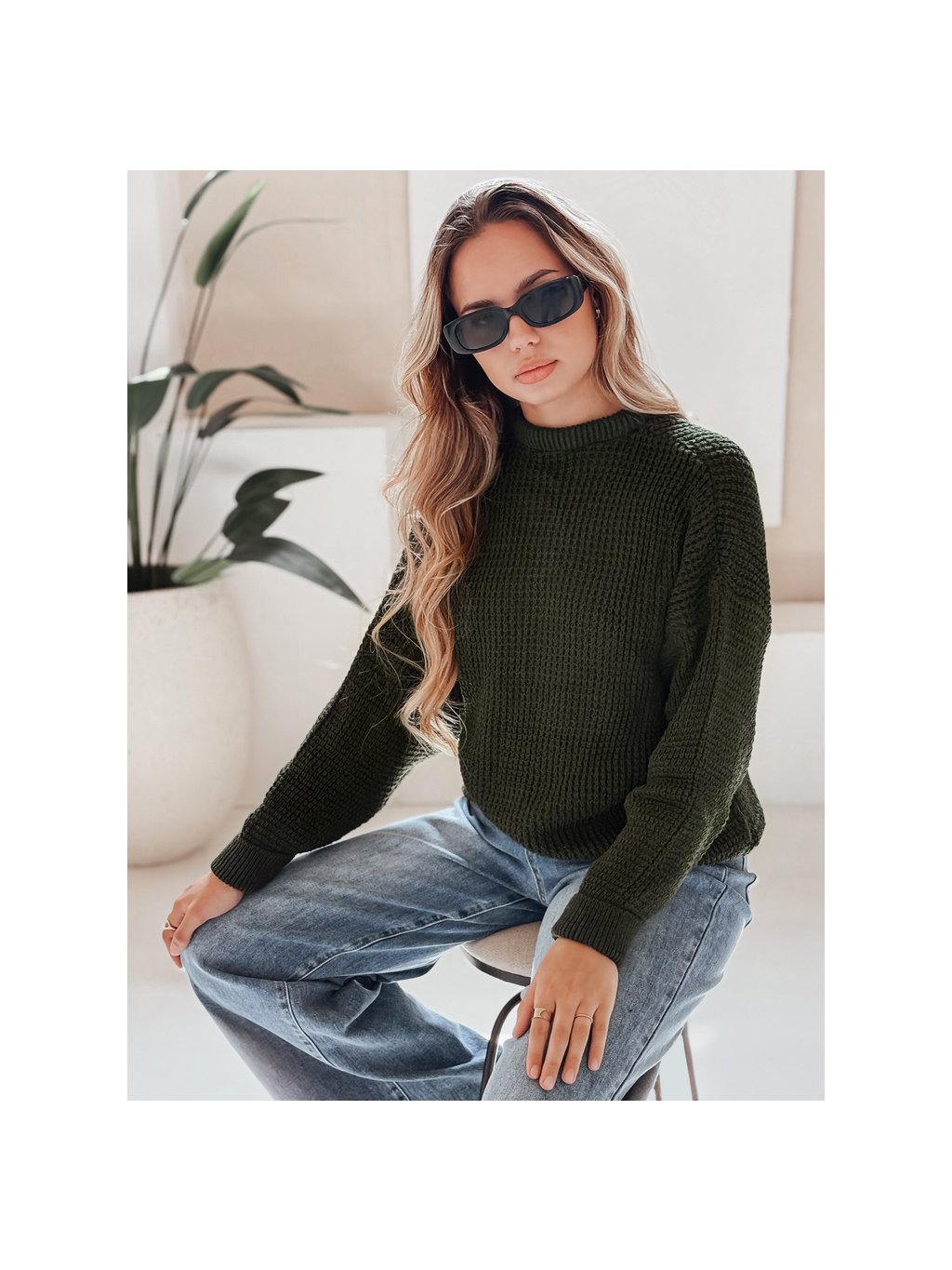 TMAVĚ ZELENÝ VOLNÝ PLETENÝ SVETR CAMERON