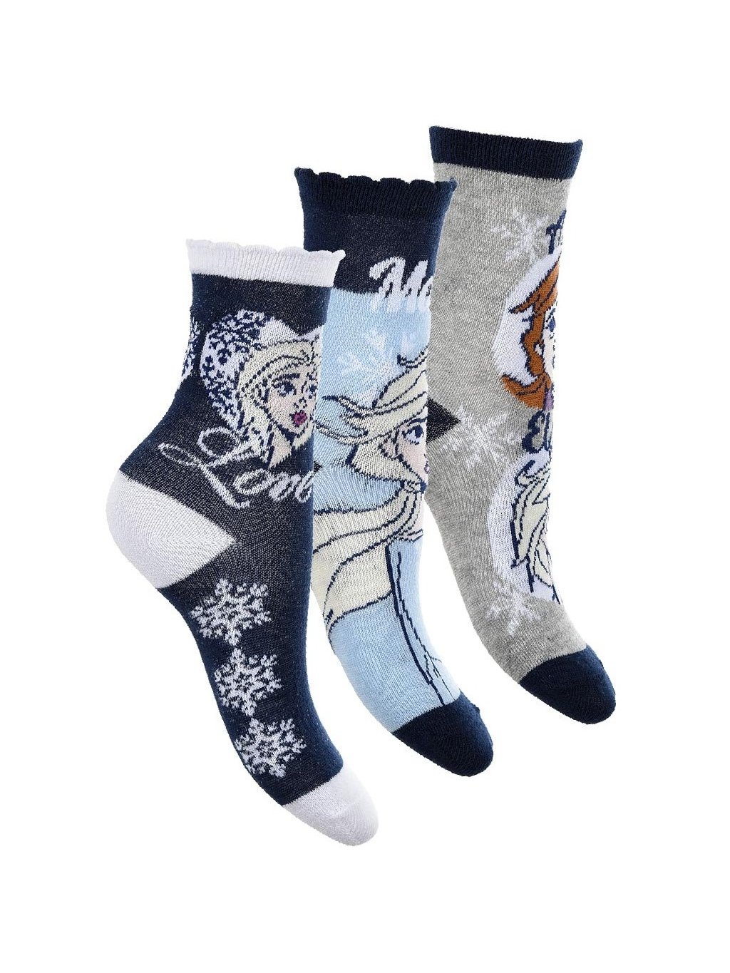 TROJBALENÍ DÍVČÍCH PONOŽEK FROZEN - TMAVĚ MODRÁ-ŠEDÁ-SVĚTLE MODRÁ