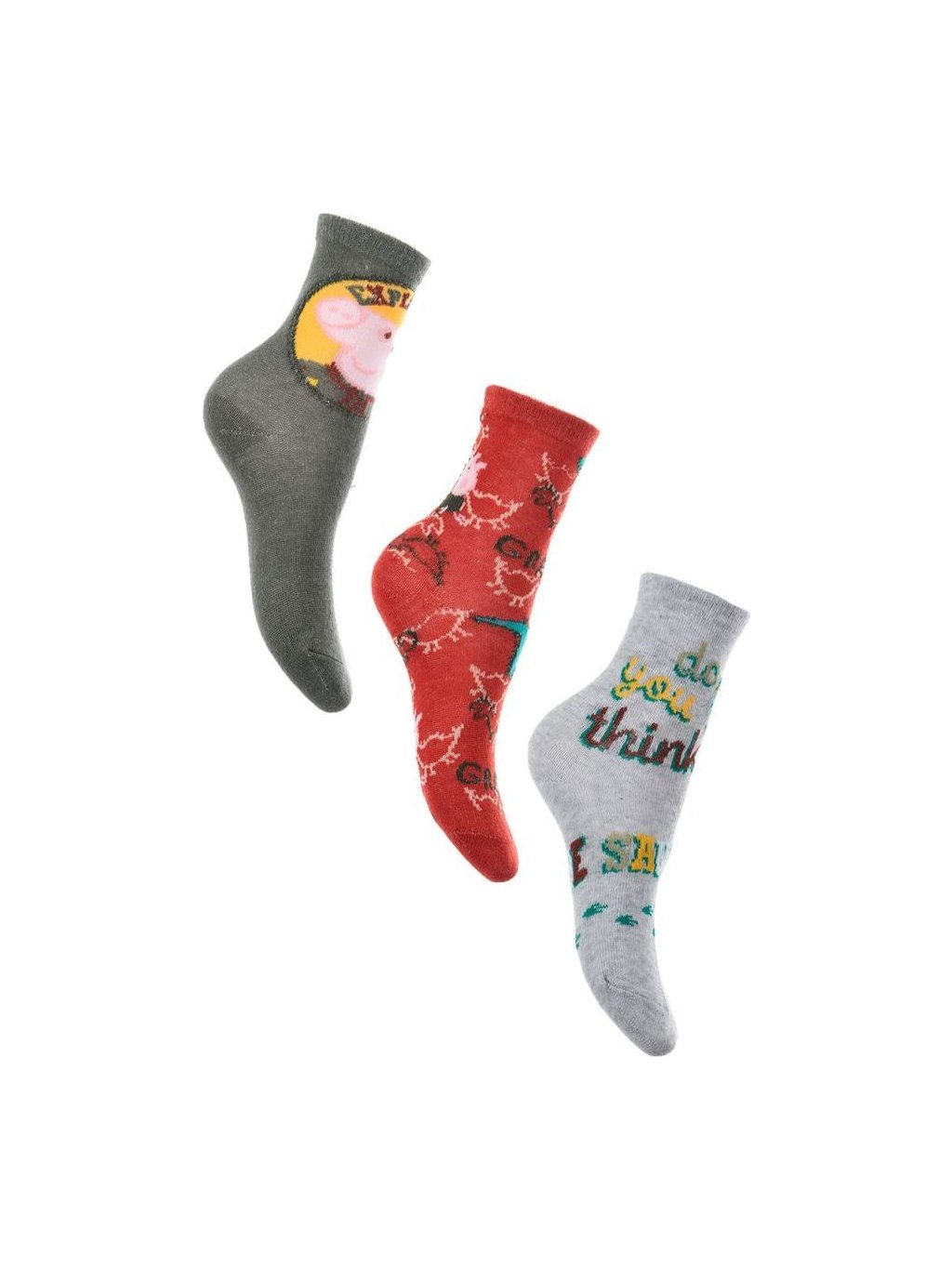 TROJBALENÍ PONOŽEK PEPPA GEORGE - KHAKI, ČERVENÁ, ŠEDÁ