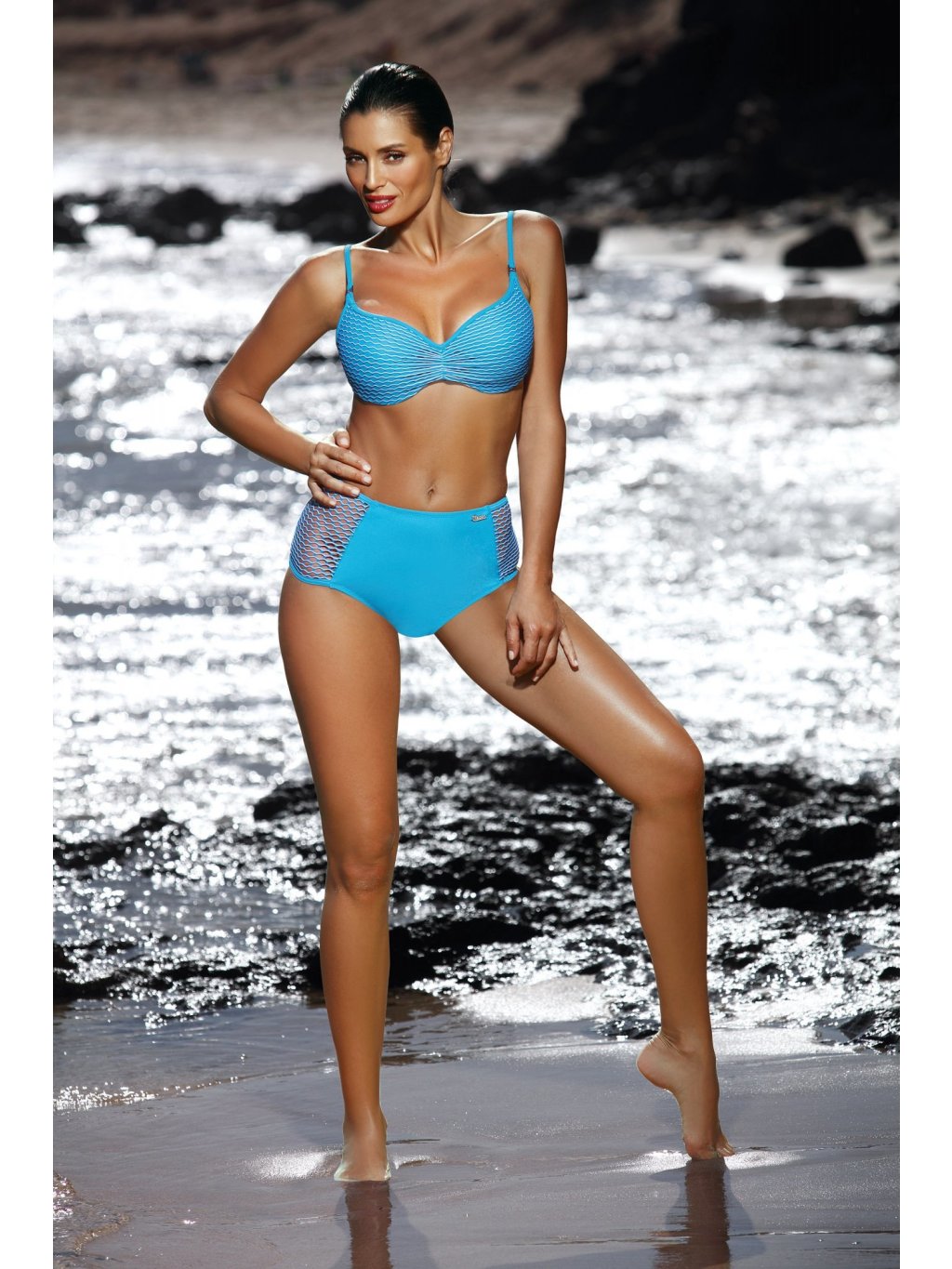 TYRKYSOVÉ PUSH-UP BIKINY SE SÍŤOVINOU MARTHA PEACOCK